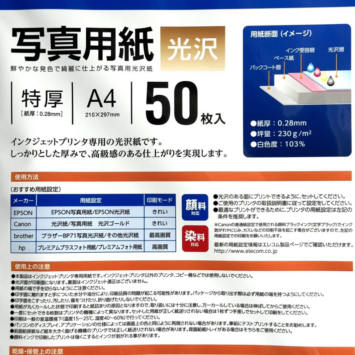 しっかりとした厚み(0.28mm)の特厚タイプ、A4サイズ50枚入