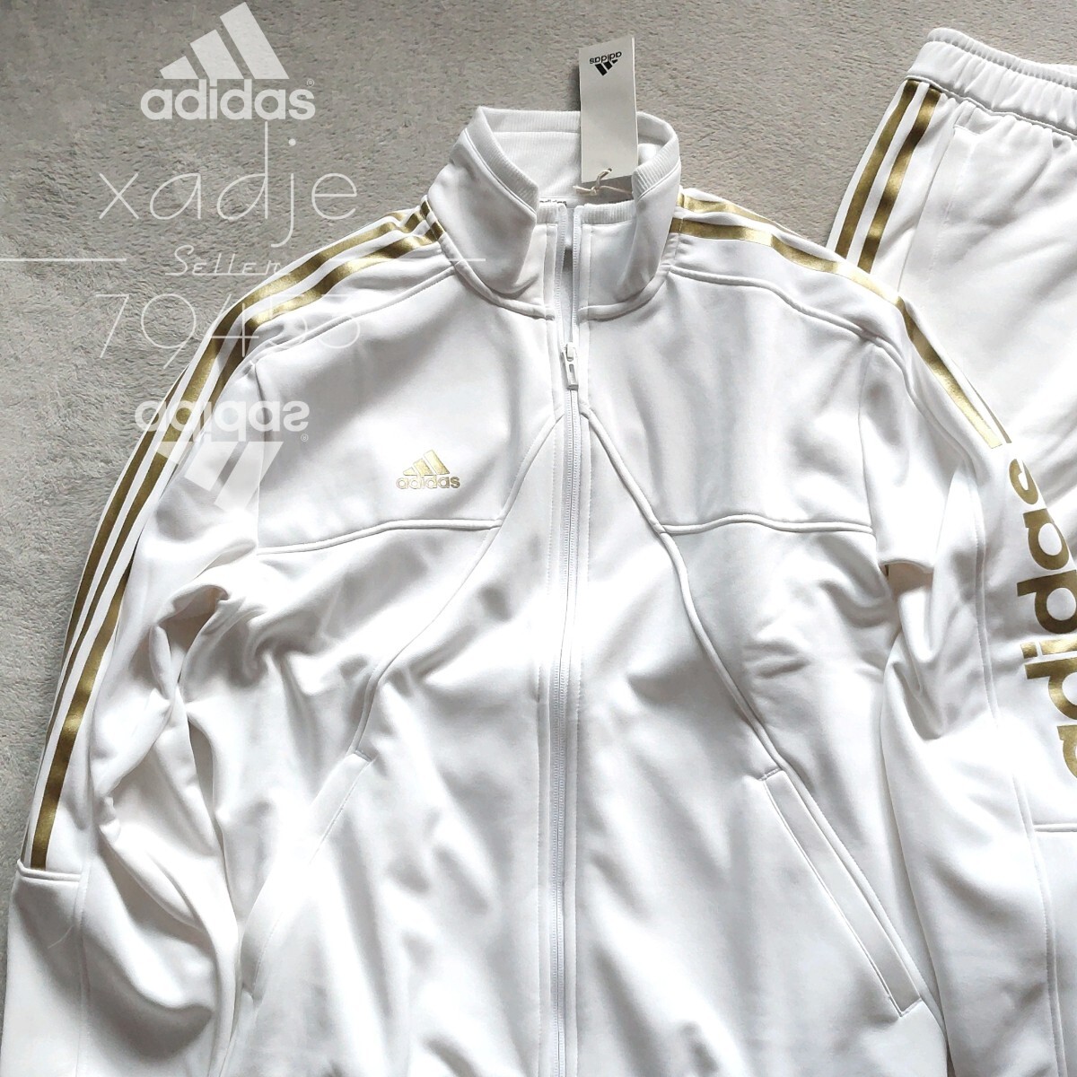 新品 正規品 adidas アディダス 上下セット ジャージ ジャケット パンツ セットアップ 白 ホワイト 金 ゴールド 定価 17600円 裏起毛 2XL