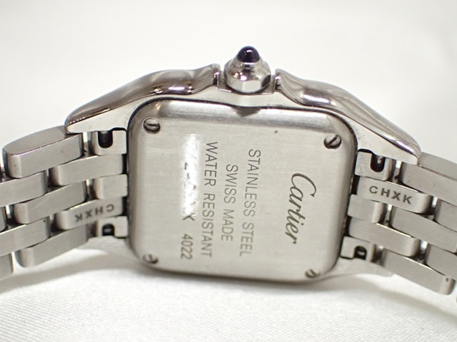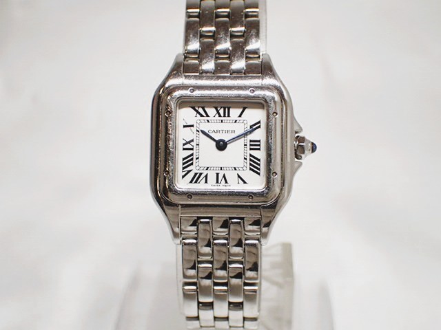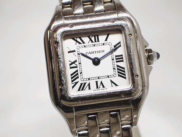 状態良♪ cartier カルティエ 4022 レディース腕時計 パンテール SM 白文字盤 この機会に是非どうぞ♪ :サイズ: ケース幅 約22mm (リューズ含まず) 腕周り(内寸) 約16cm (素人採寸です。ご参考程度になさって下さい。) 商品はお写真の物で全てです。 画像はデジカメ撮影となります。 忠実な再現を心がけておりますが、若干お色が異なる場合が御座いますので、ご了承ください。 〇今日現在きちんと動いておりますが、電池は消耗品となります為サービス品扱いです。 お手元に届いた時に万が一電池が切れてしまっている場合は、お手数ですが落札者様の方で電池交換をお願い致します。 〇使用品につき、スレキズ、汚れ、使用感が御座います為、店舗販売の様な完品をお求めの方、商品状態に神経質な方のご入札はご遠慮ください。 〇ケースはサービス品扱いです。 | ||||