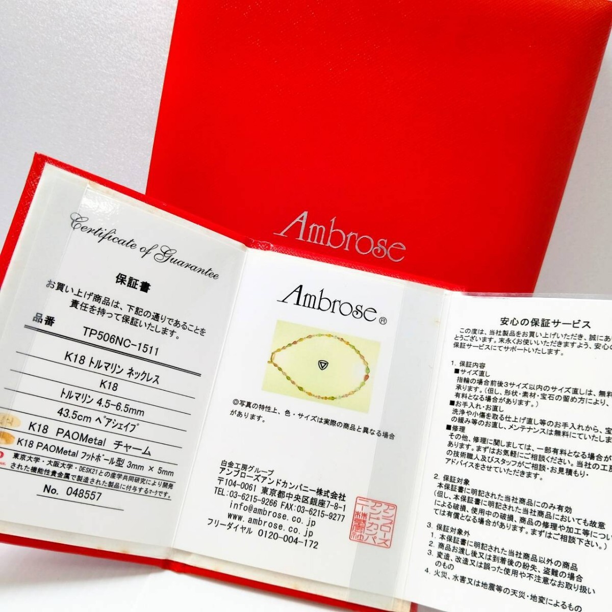 K18 Ambrose アンブローズ 天然トルマリンネックレス tourmaline necklace jewelry 19.0g 約43.5cm 保証書 箱付 ジュエリー 1円スタート