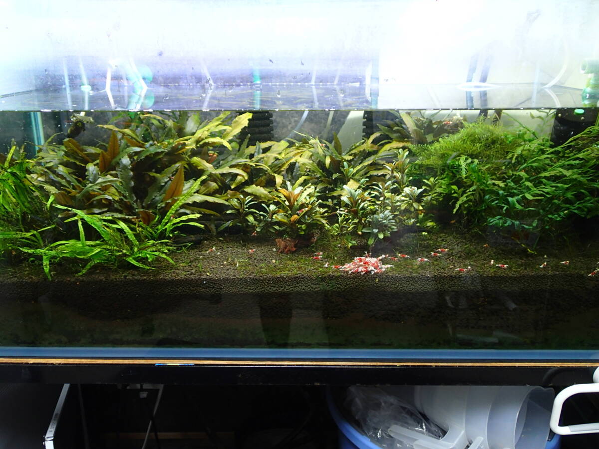 太極(タイジ)という名前のシュリンプのみの飼育水槽からです。稚エビの混入の可能性もゼロではないと思いますのでそちらもご理解ください。このシュリンプも出品中です。