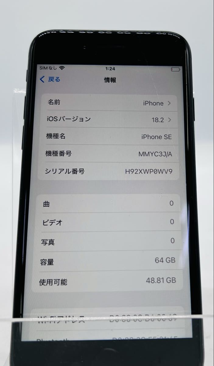 Apple iPhone SE (第3世代) ミッドナイト 64GB MMYC3J/A バッテリー最大容量85% SIMフリー