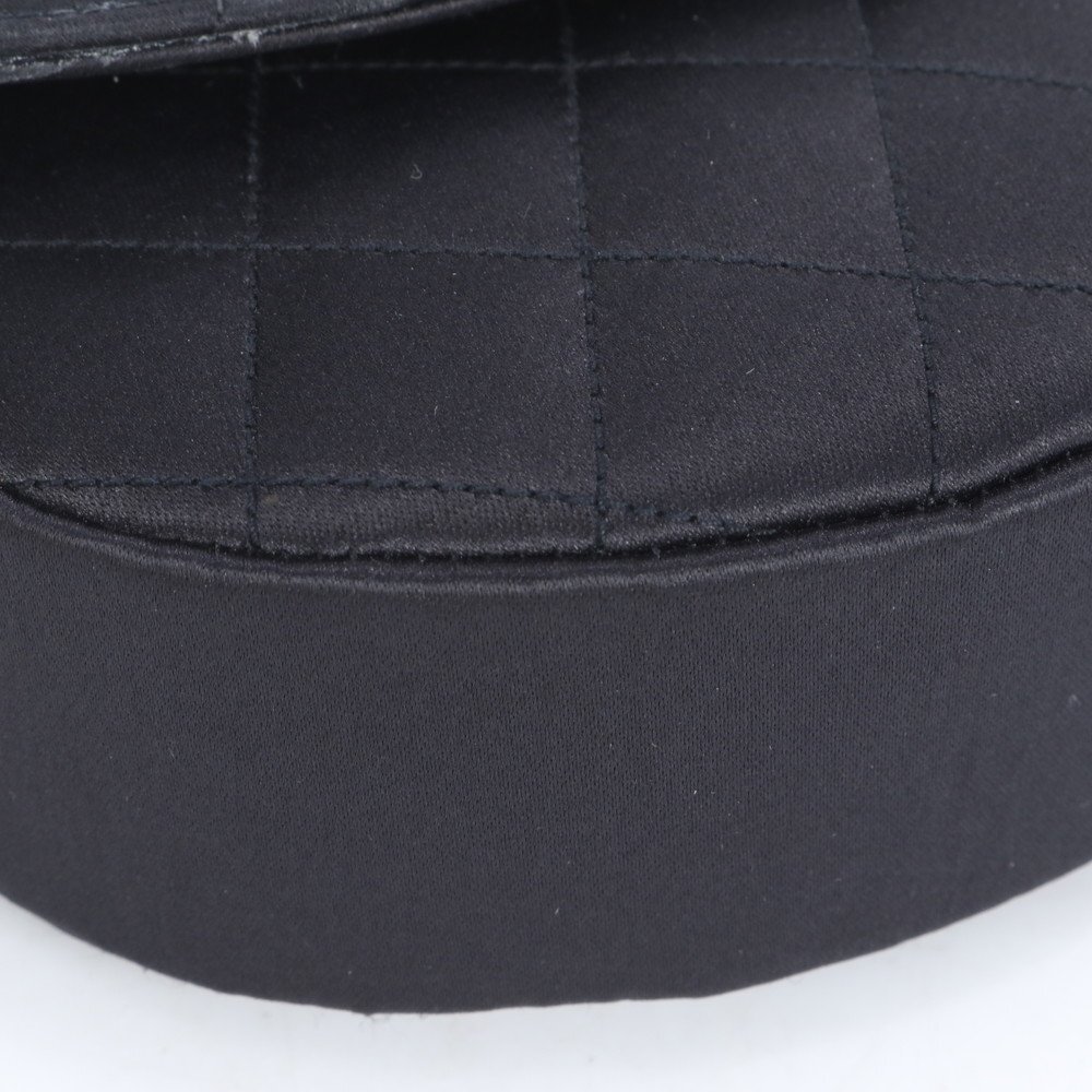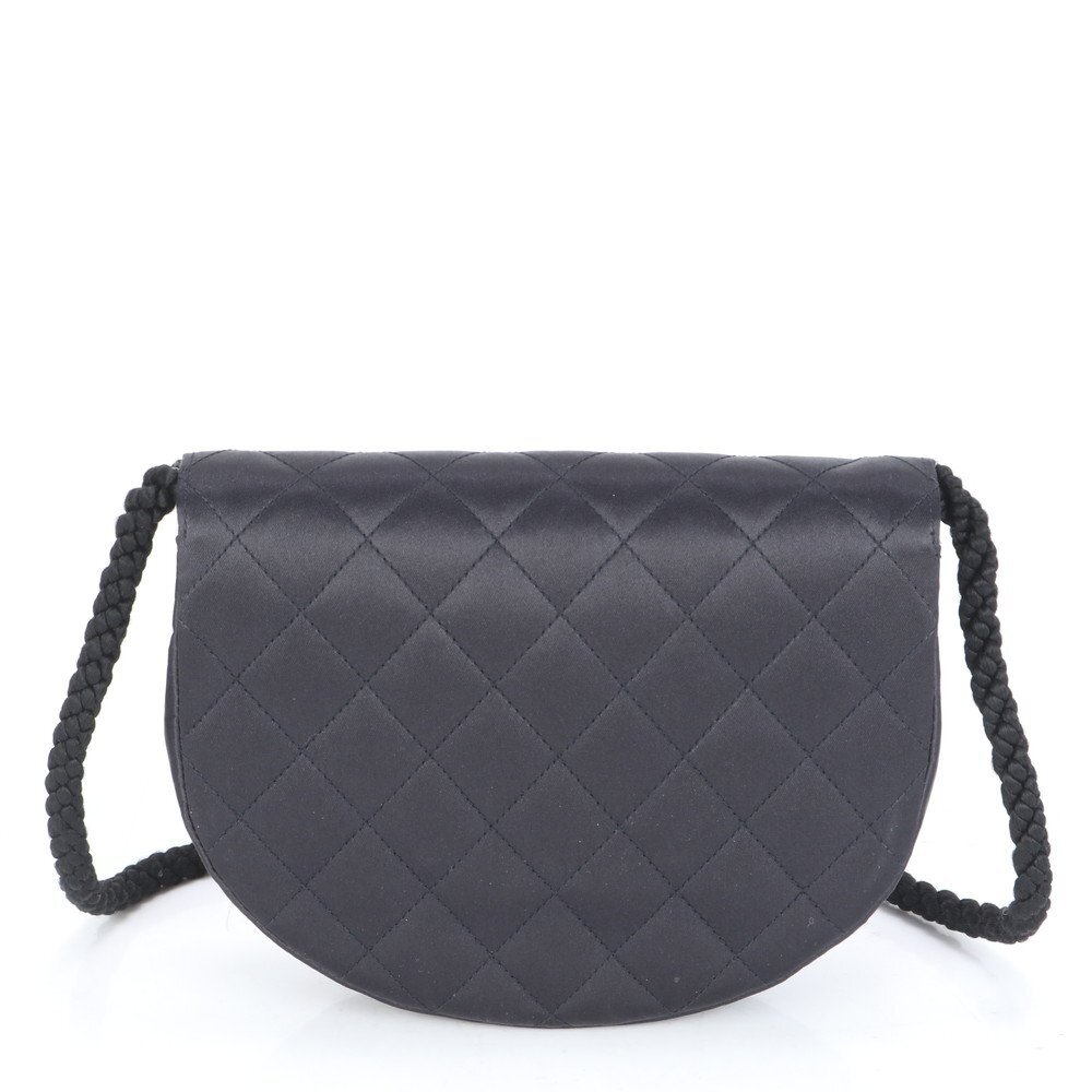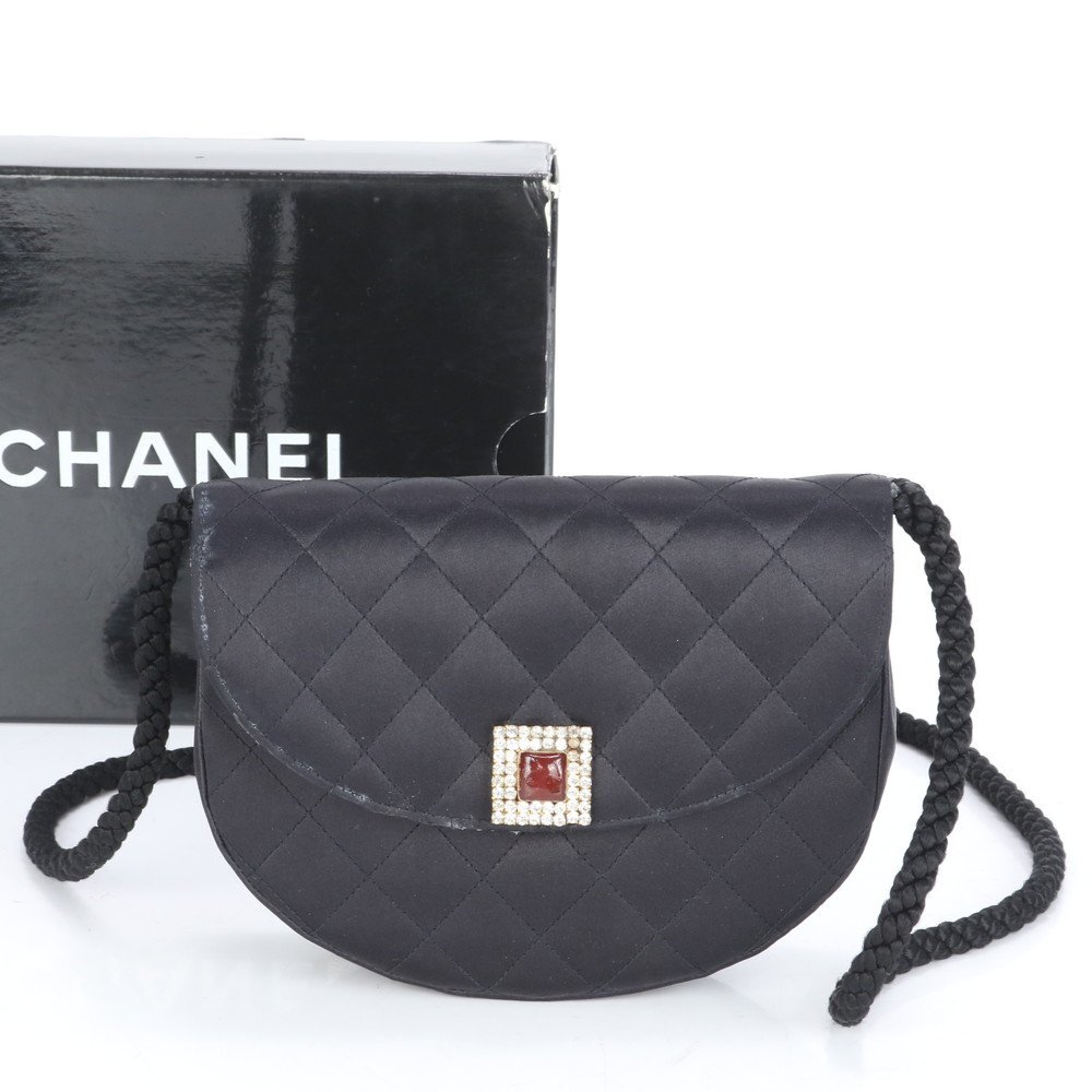1円 美品 シャネル シリアルシール付 マトラッセ サテン ハーフムーン ラインストーン ショルダーバッグ 斜め掛け レディース RUE CF24-5