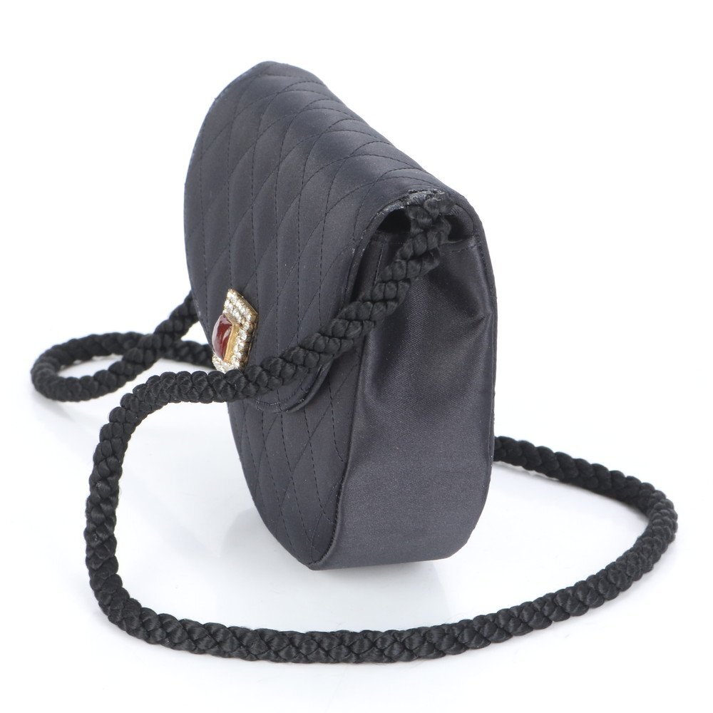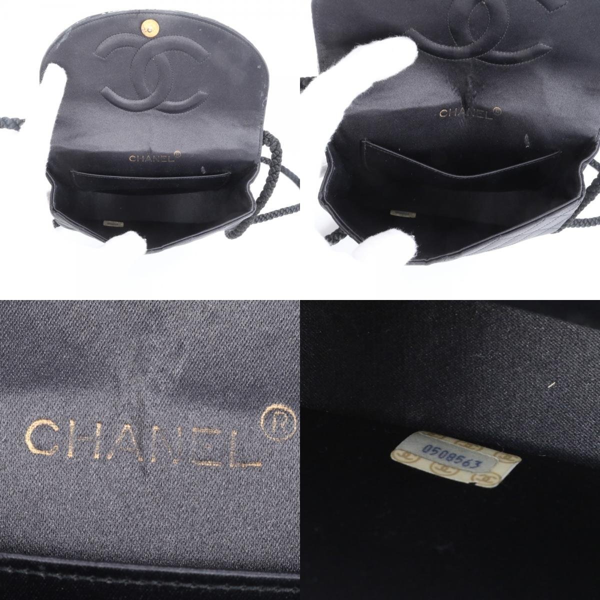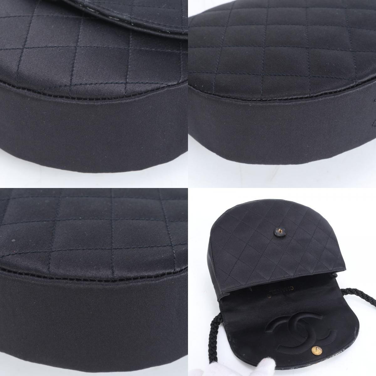 1円 美品 シャネル シリアルシール付 マトラッセ サテン ハーフムーン ラインストーン ショルダーバッグ 斜め掛け レディース RUE CF24-5