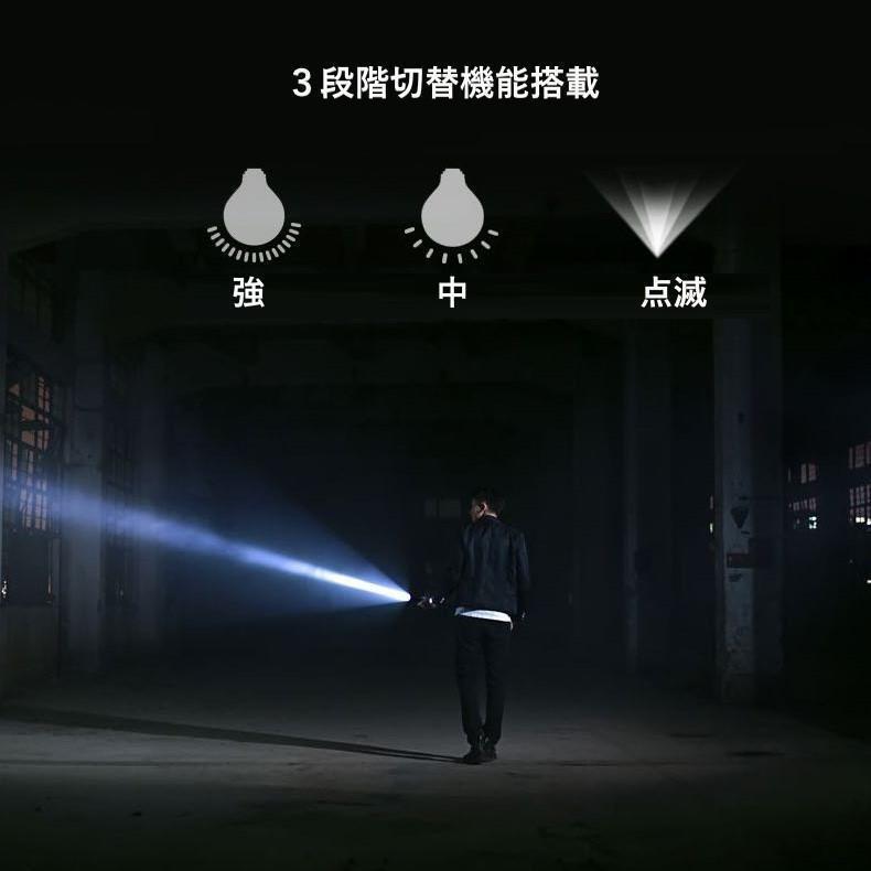 スイッチ一つで3モードが切替可能、ハイモード→ローモード→点滅モード