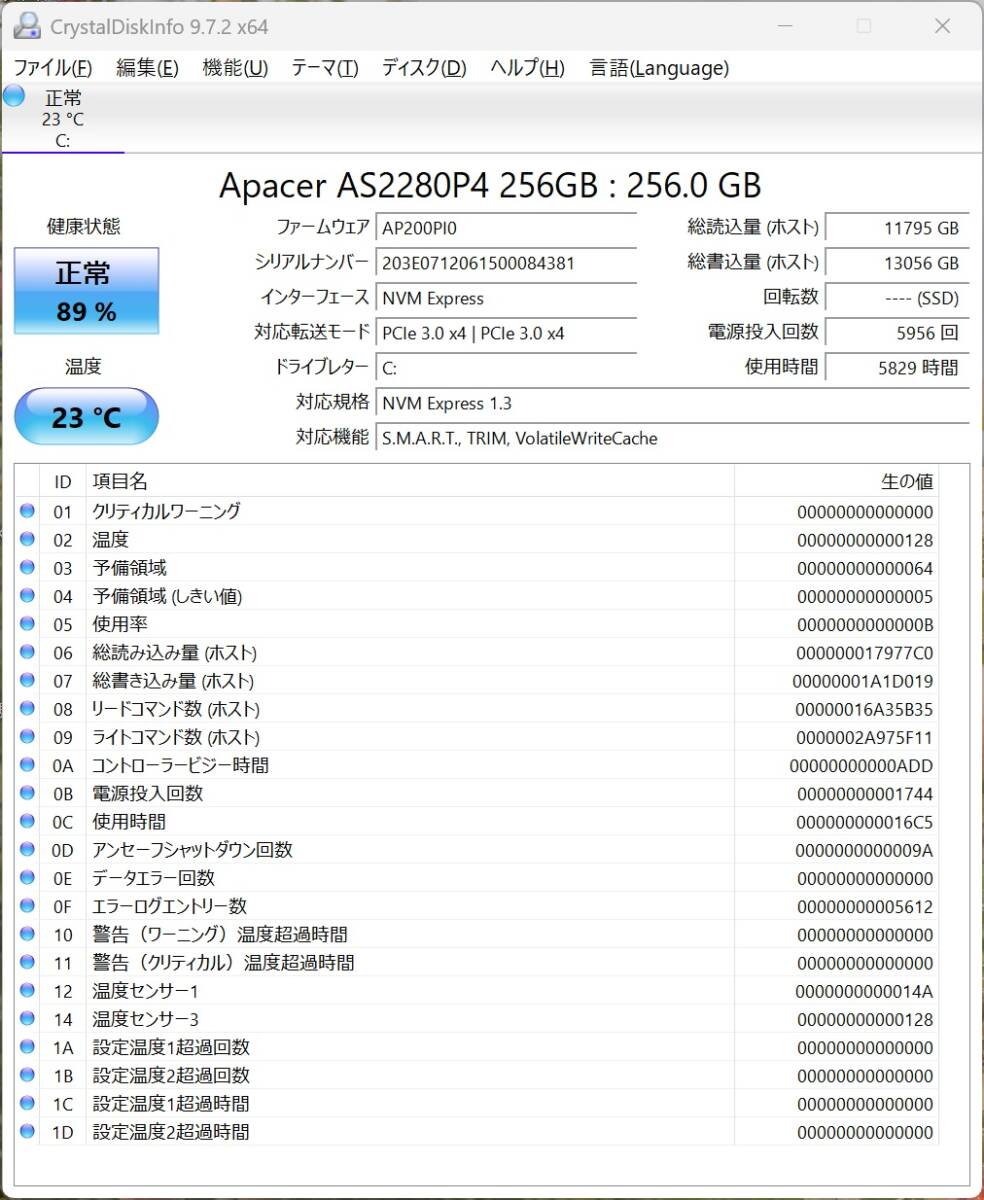 Apacer (アペイサー) Apacer M.2 2280 NVMe PCIe AS2280P4シリーズ 256GB