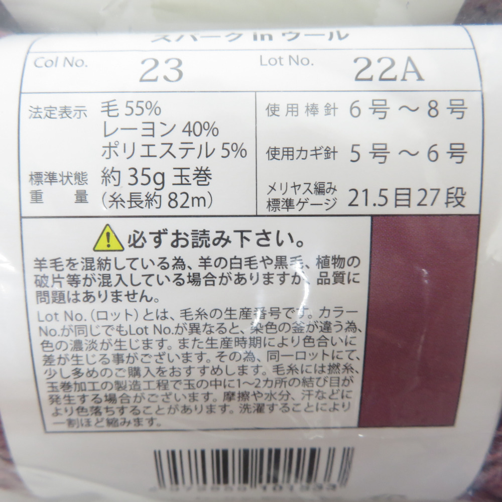 毛糸 スパーク in ウール 10玉セット 1玉35g 約82m 日本製 Col No.23 ごしょう産業 未使用品