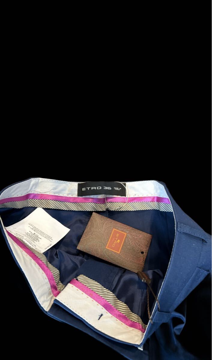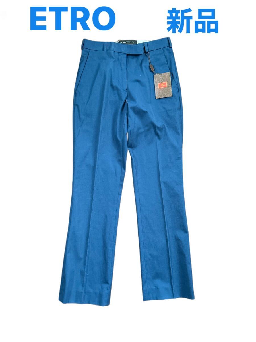 新品未使用の高額品を破格値から出品スタート★最高級素材 ETRO ペイズリー パンツ エトロ 36サイズ コットン ストレッチ ブルーネイビー系