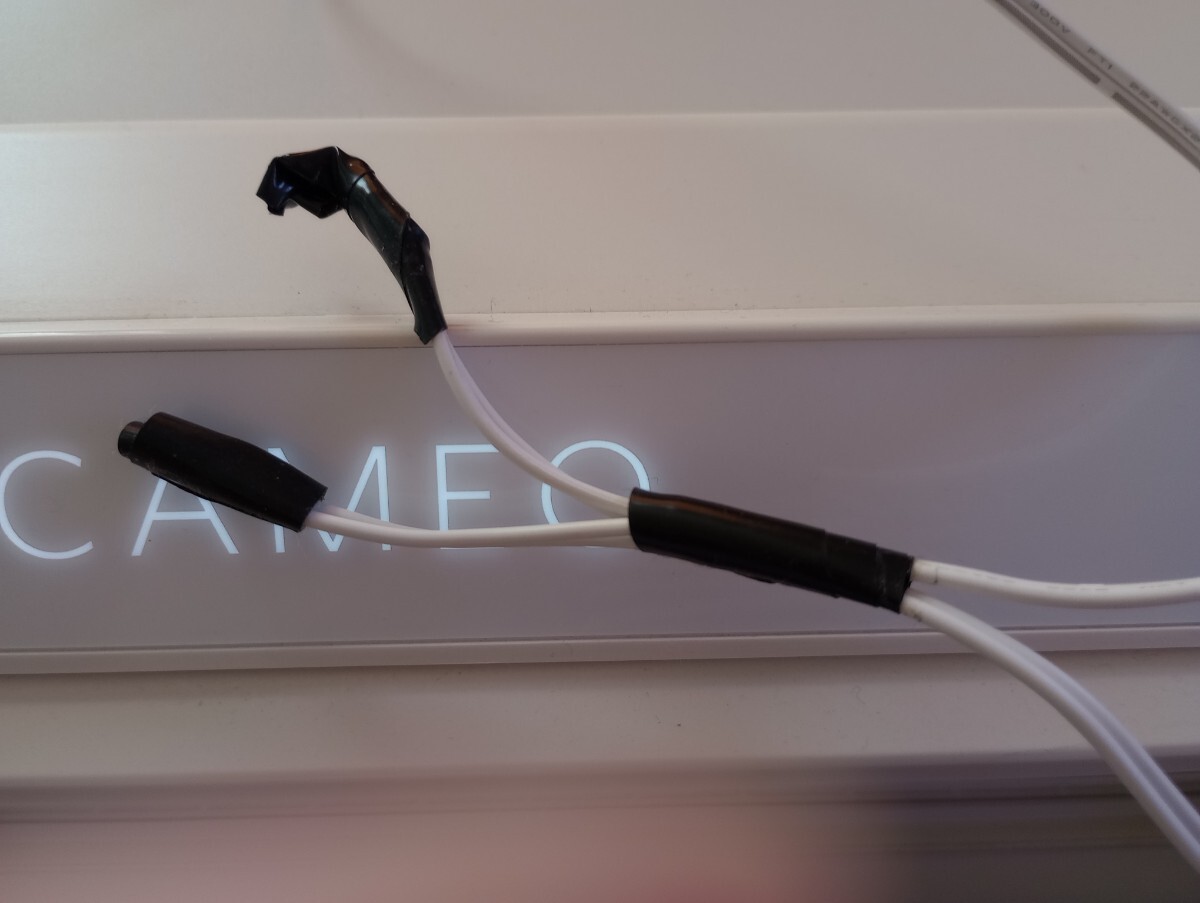 画像8枚目、9枚目、ケーブルを間違えてカットしたため、繋ぎ合わせてビニールテープで巻いてあります。