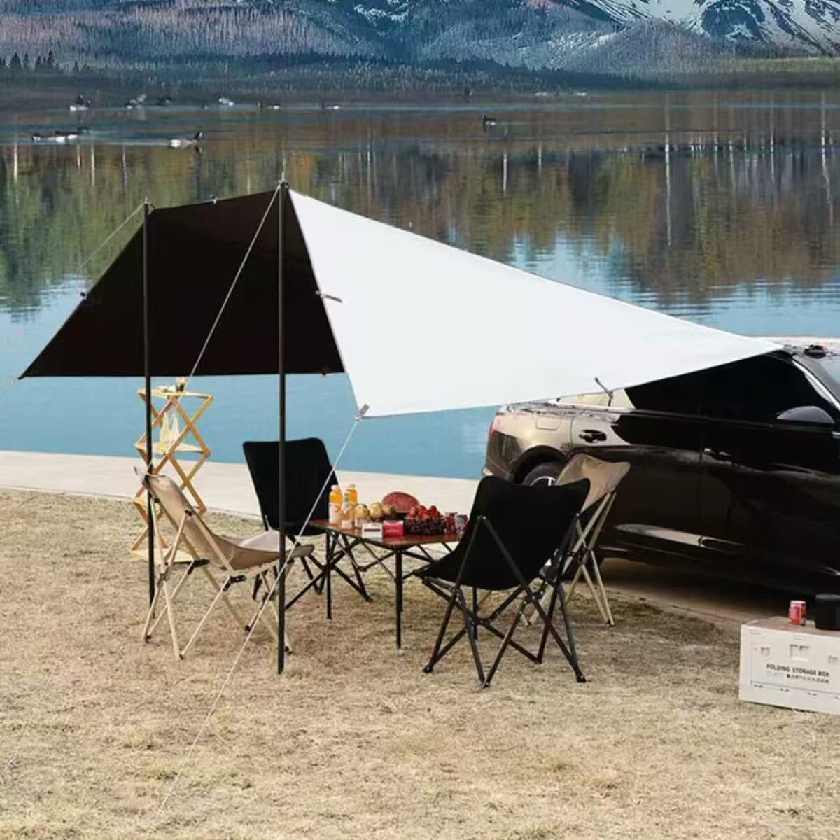 アウトドア 超高品質 車用サイドタープ 台形タープ 防水UV日焼け紫外線カット 遮光黒コーティング生地 キャンプ 野外登山 4.55×3m