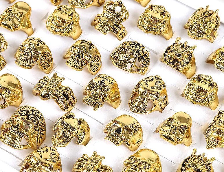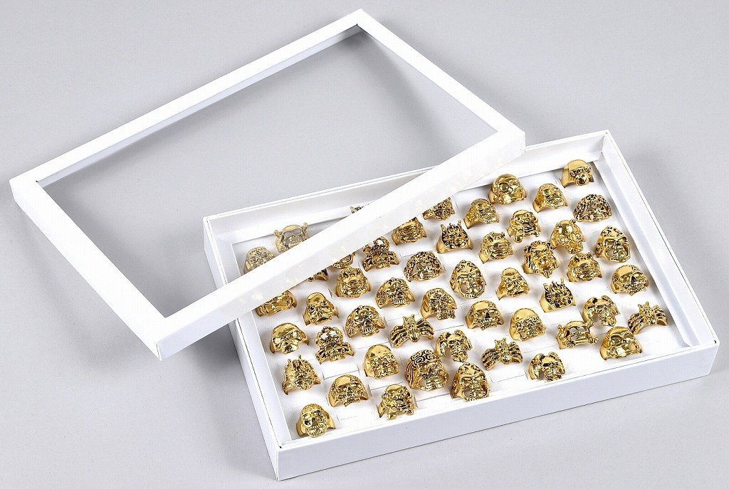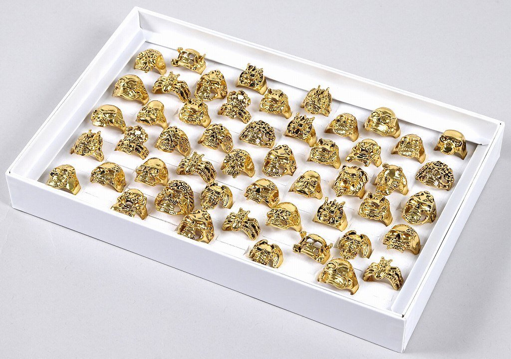 新品 メンズ ゴールド メタルリング 豪華50点セット ゴールド色のドクロやインディアンデザインのメンズファッションリング 豪華 50点セットです。 重厚で存在感のあるものを集めました。 指輪のデザインは写真を参考にしてください。 商品は写真の指輪をランダムに50点選んで発送いたします。 (サイズもランダムになります。場合によっては写真にはないデザインになることもあります。) 選ぶ際はなるべく写真と同じような比率になるように選ぶようにいたします。 (極端な偏りがあるような選び方はいたしません。) サイズ:約16~20mm 指輪総重量:約500g 材質:合金 金色メッキ (金によるメッキではありません。) 個数:50点 ※写真のようにケースに指輪50点を収めた状態で発送いたします。 (ケースはロットによってデザインやカラーが違う場合があります。) ※ケースはおまけとして出品しますので、ケースの不具合に関しては対応はできません。 当店の他の出品商品との同梱料は下記のとおり落札1点につき200円です。 |