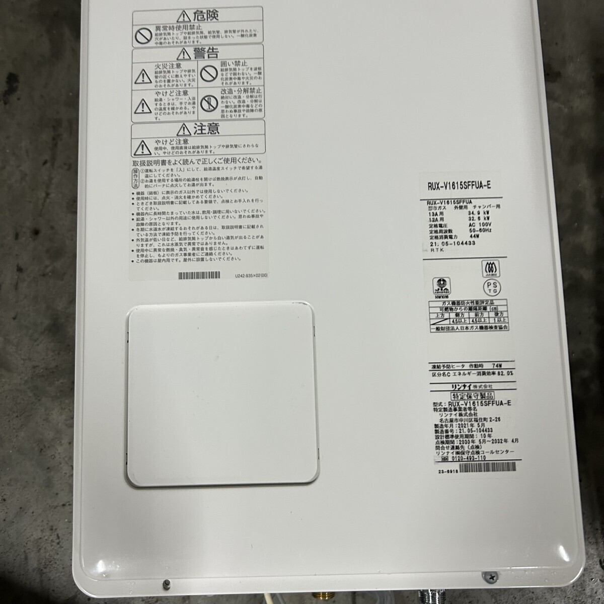 Rinnai リンナイ RUX-V1615SFFUA-E ガス 給湯器 2021年製 都市ガス 16号 給湯専用 チャンバー用 (6)