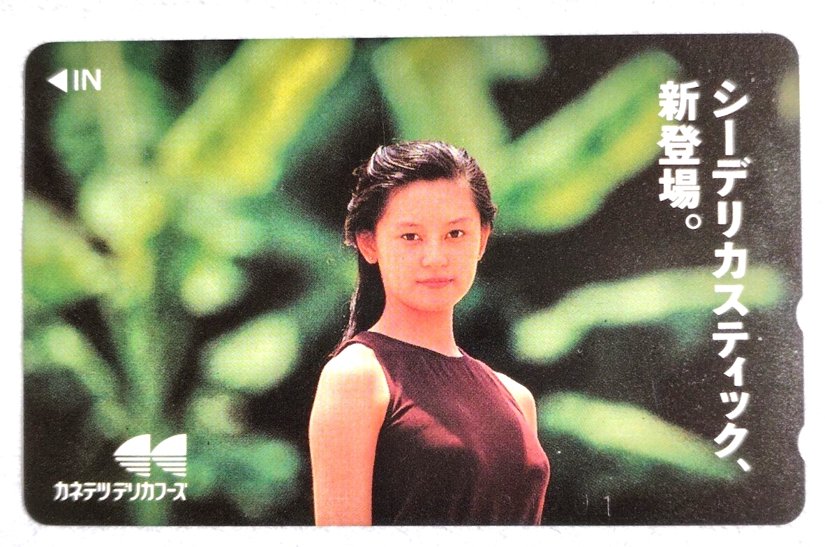 テレフォンカード 50度数・未使用 つみきみほ◆カネテツデリカフーズ・シーデリカスティック 美品ですが表面下部に数字の番号が10桁、薄い型押で入っています。傾けないと見えない程度です。シリアルナンバーなのでしょうか、よく分かりません