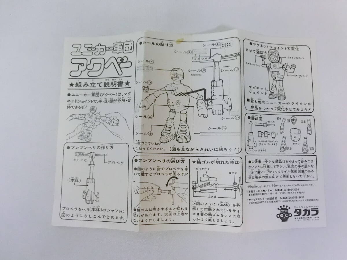 昭和 当時物 タカラ ミクロマン マグネモ アクロイヤー ユニーカー軍団 アクベー 説明書 カタログ