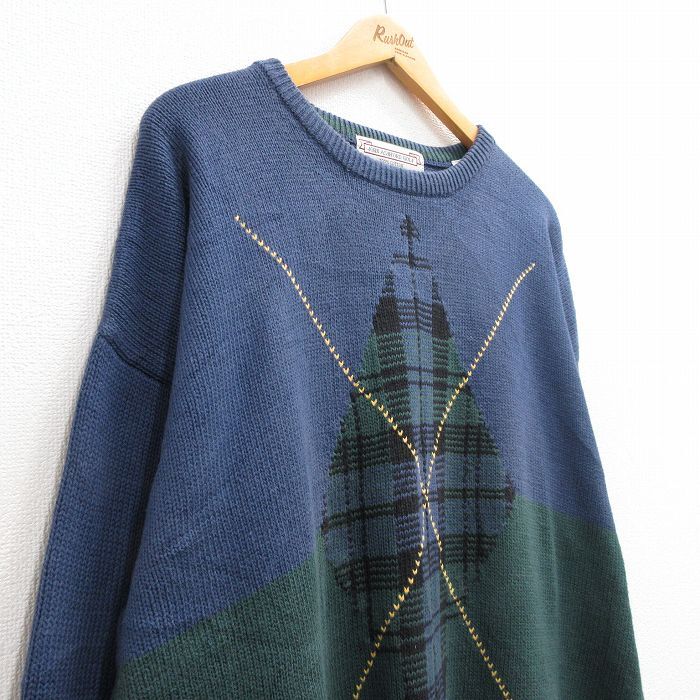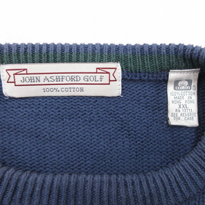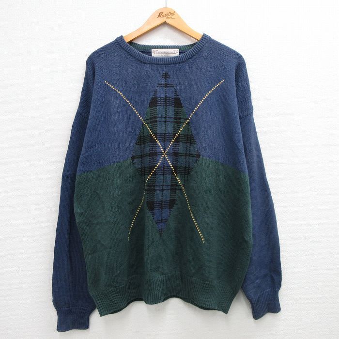 【商品名】 XL★古着 長袖 セーター メンズ 00年代 00s 大きいサイズ コットン クルーネック 紺他