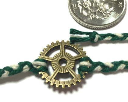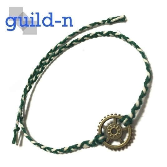 【guild-n ★ 歯車 ギア グリーン+ホワイト 緑 白 ブレイド ヘンプ 麻 細い アンクレット ブレスレット ミサンガ スチームパンク】