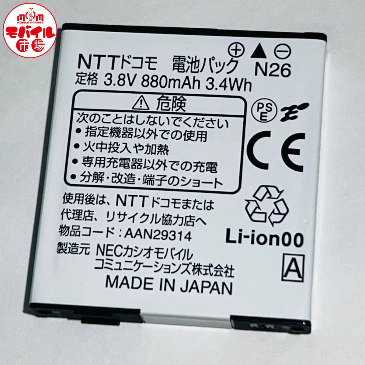 使用品名 : NTTドコモ 純正電池パック N26 NEC製 状 態 : 充電確認済み・中古・クリーニング済み。 |
