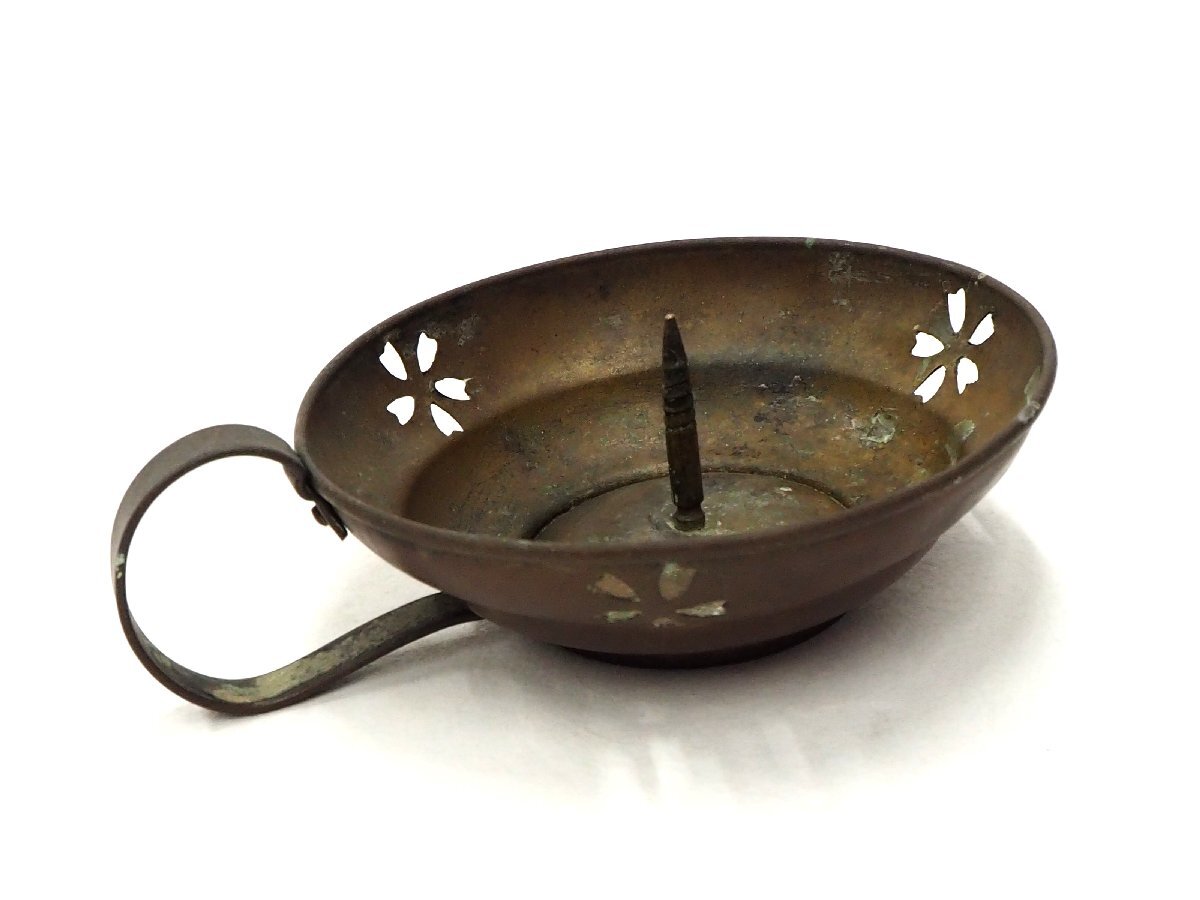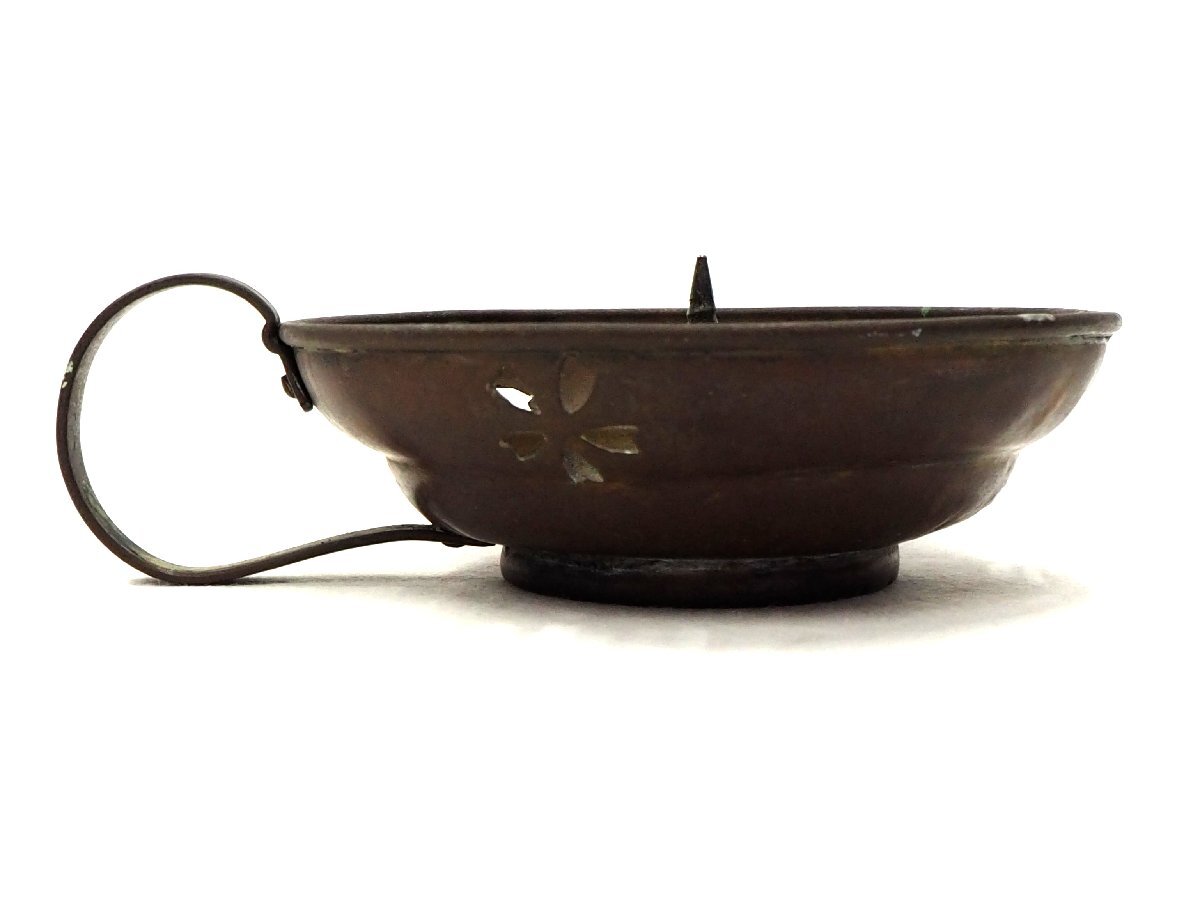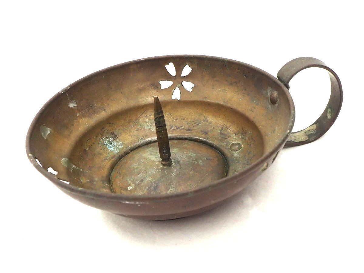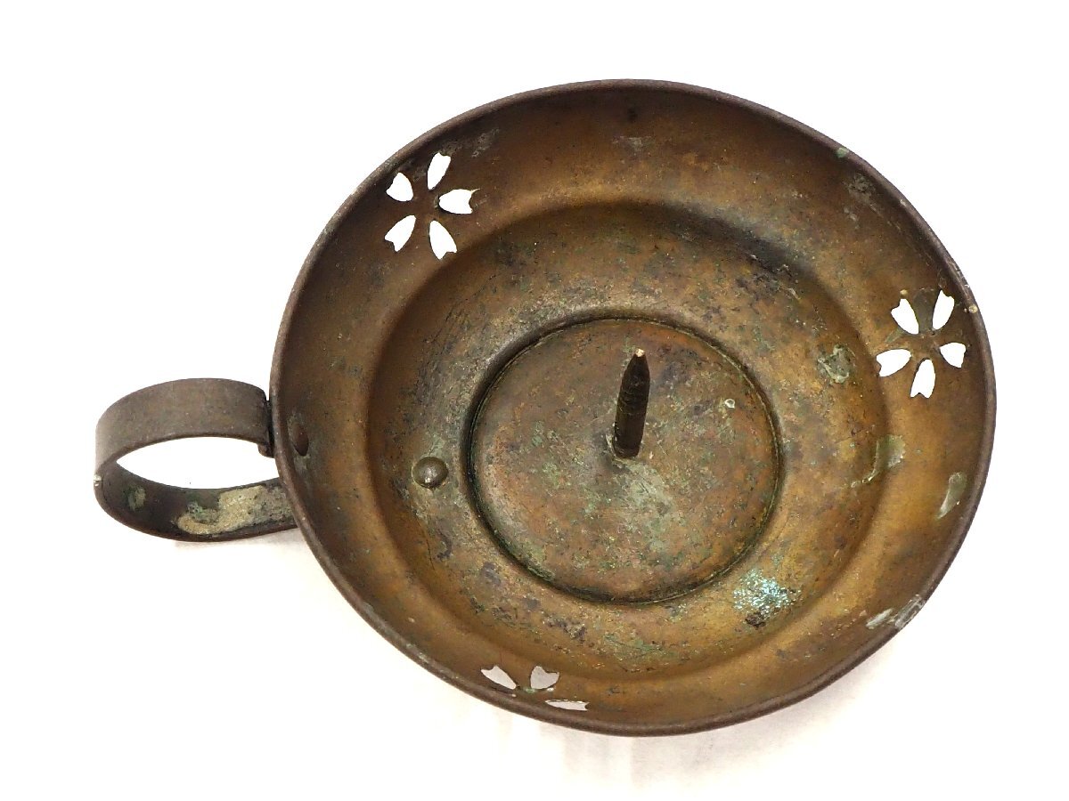 ★☆【 時代 手燭 手持 燭台 桜透し 】ローソク立 灯火器 和蝋燭 民藝 古民具 古道具 骨董 アンティーク ☆★