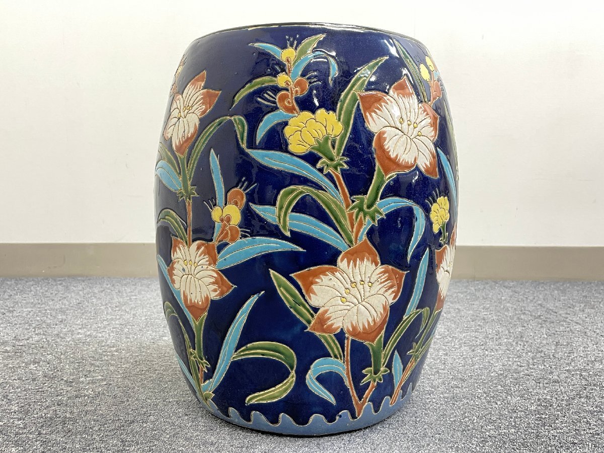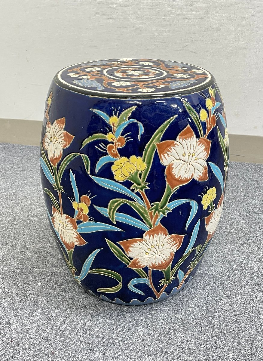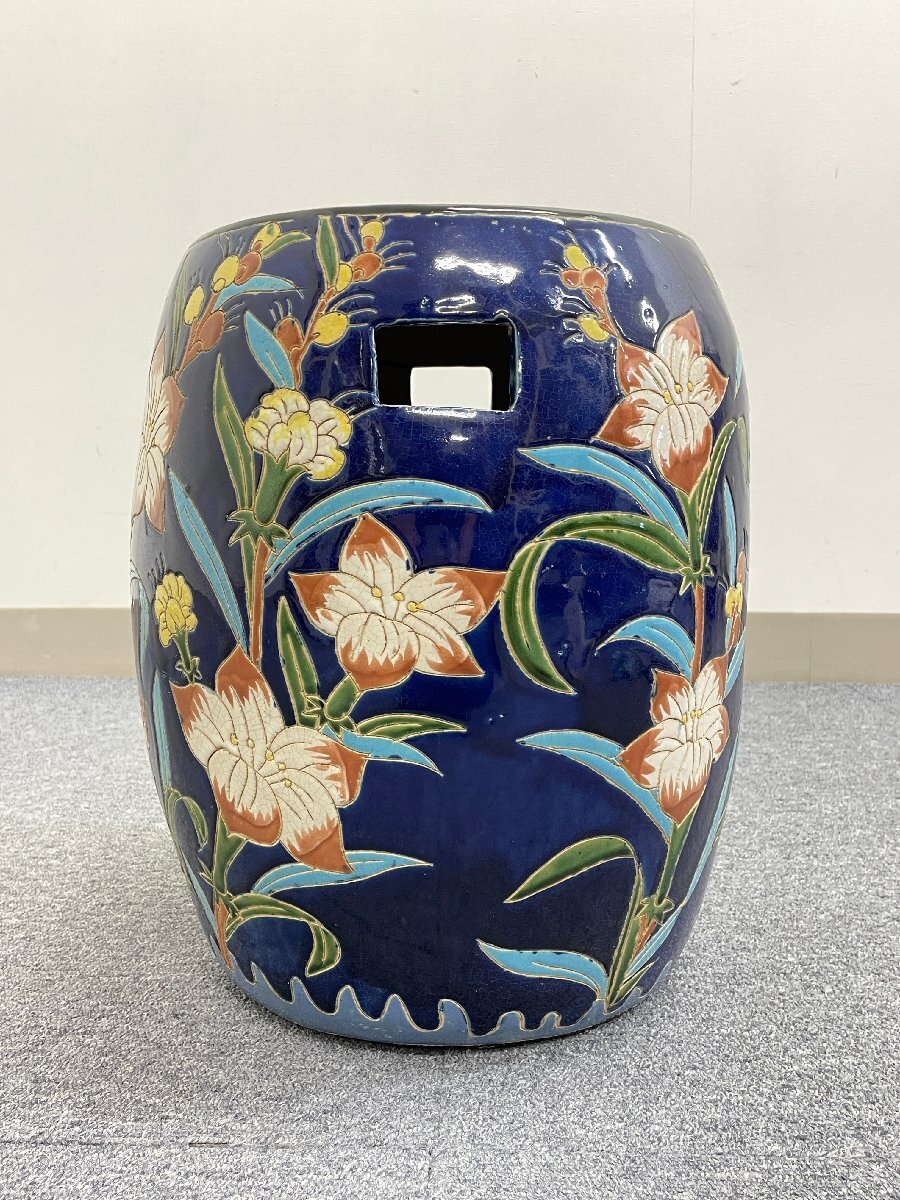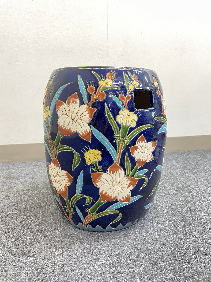 ・陶器製 花模様 ガーデンスツール 花台 フラワースタンド インテリア エクステリア ガーデン 庭