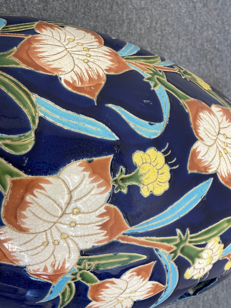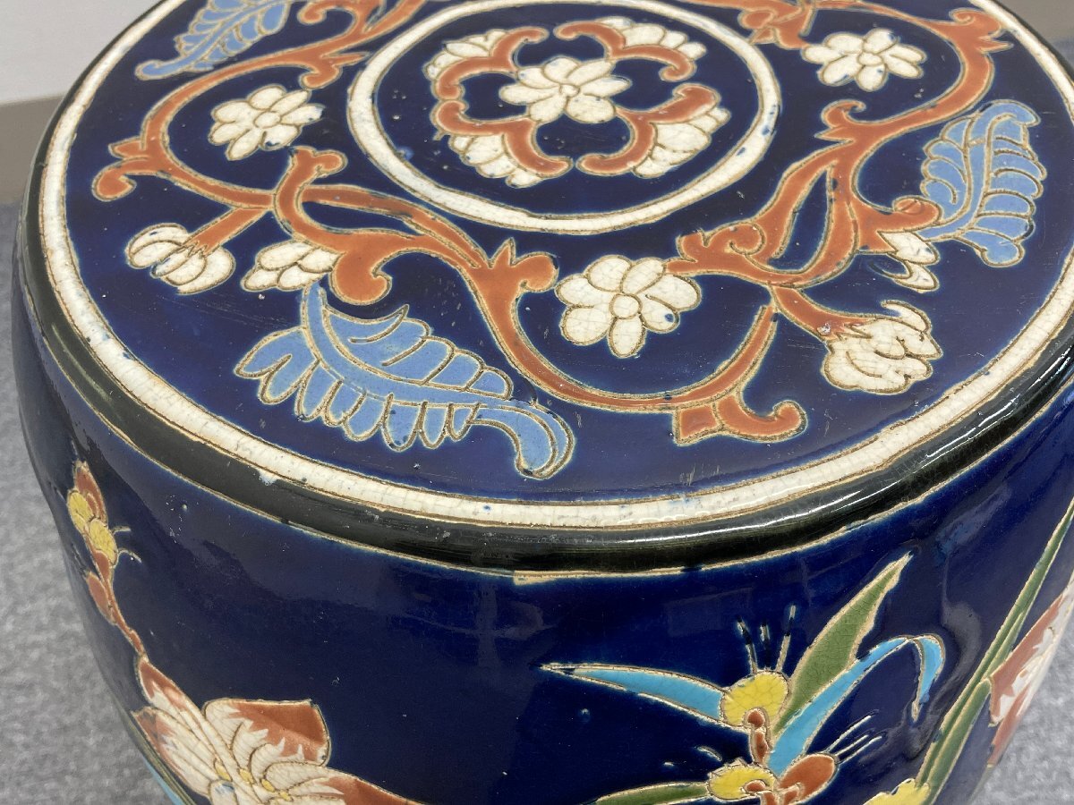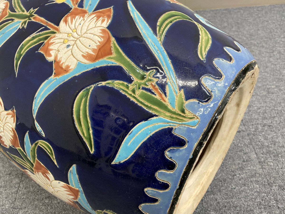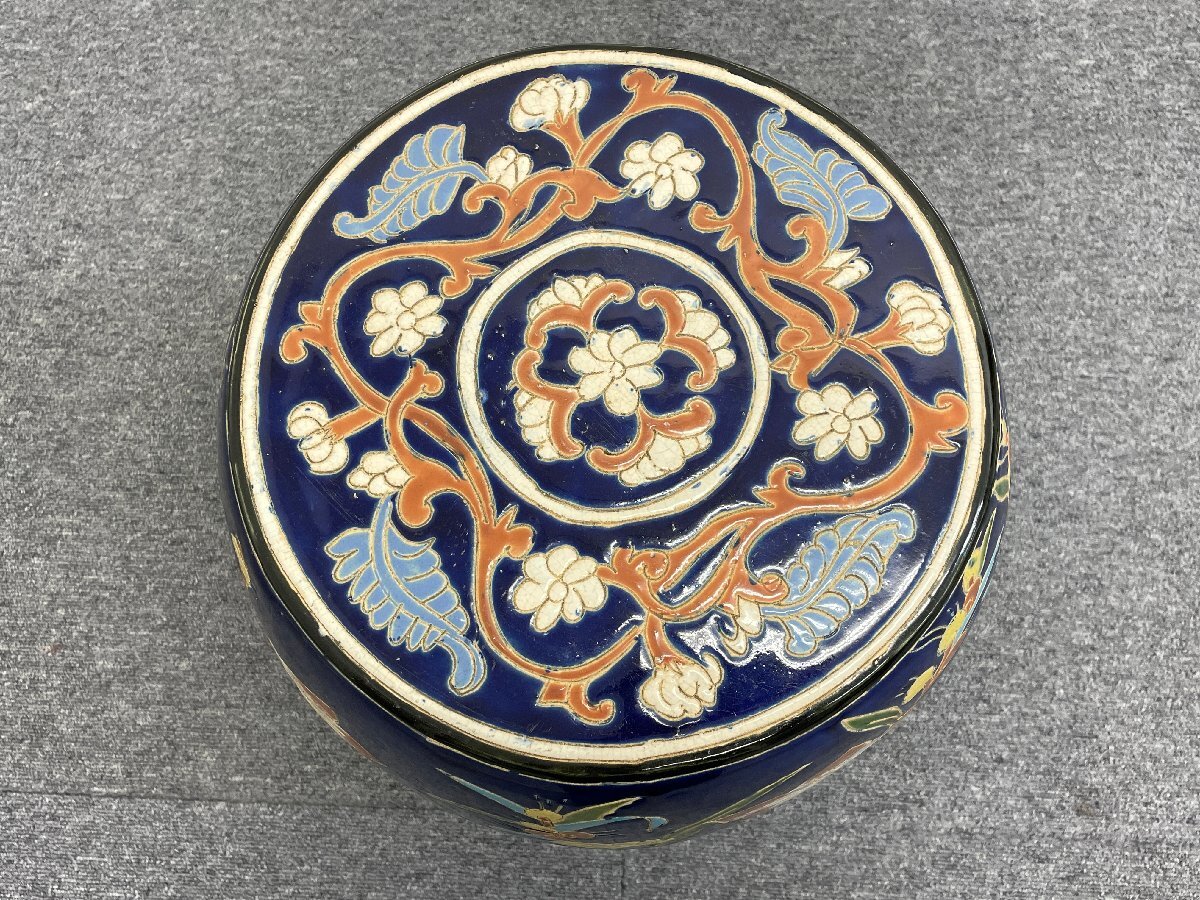 ・陶器製 花模様 ガーデンスツール 花台 フラワースタンド インテリア エクステリア ガーデン 庭