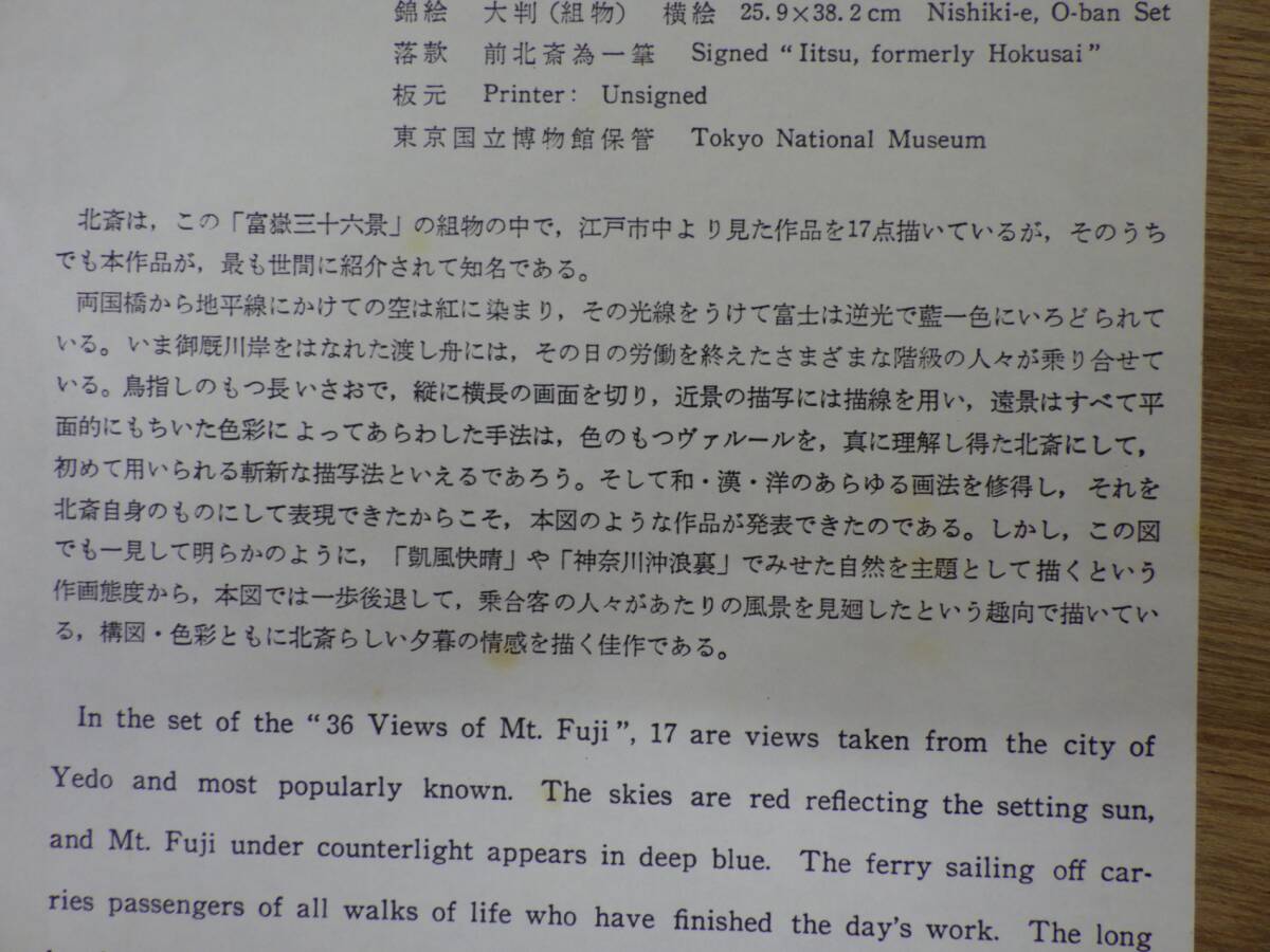| 商品名 | 葛飾北斎 錦絵 富嶽三十六景 御厩川岸より両国橋夕日見 版画 名所絵 長期在庫 中古品 |