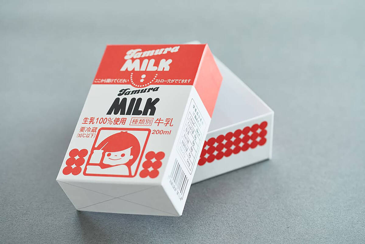 山形県酒田市にある牛乳屋さんの紙パック牛乳(200ml)のパッケージデザインを使用したかわいい貼り箱です。