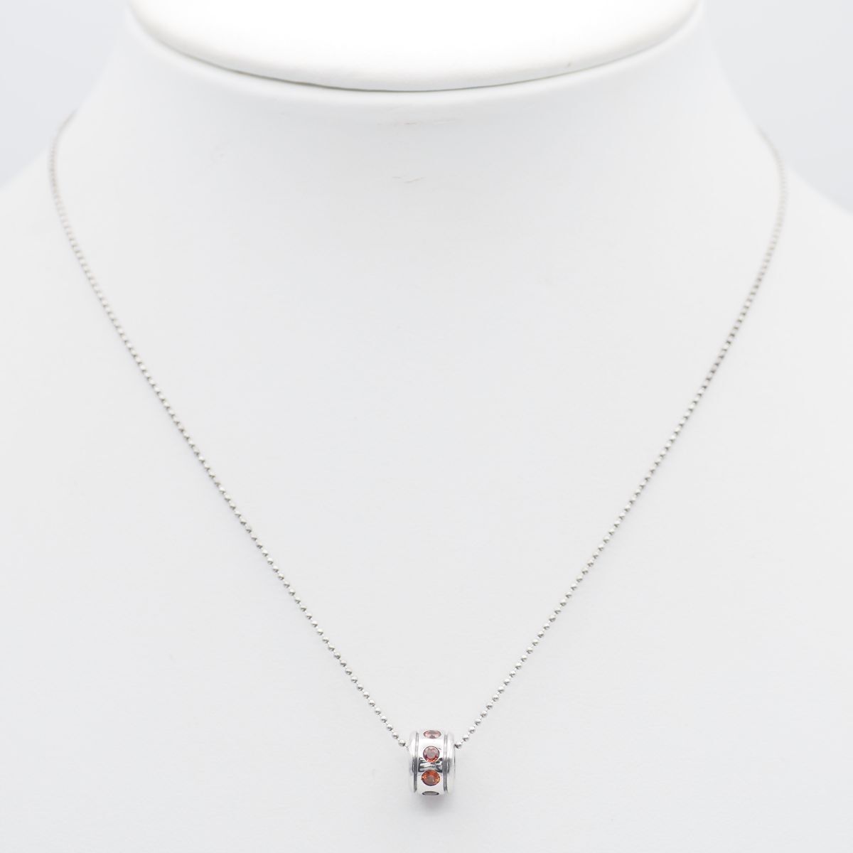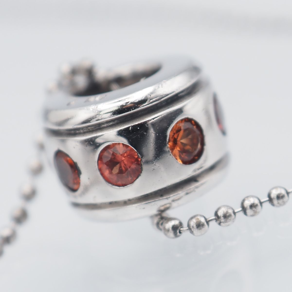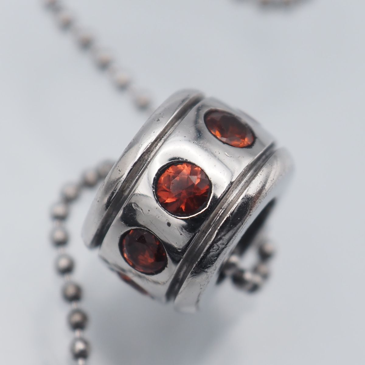 F524 ガーネット STERLING P/S刻印 ペンダント ネックレス サークル リング デザイン プラチナシルバー 1月誕生石