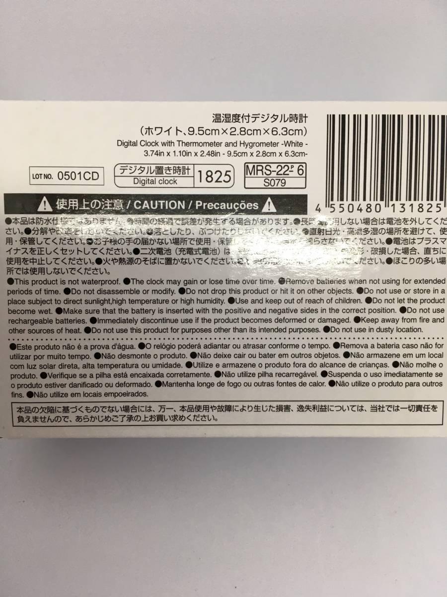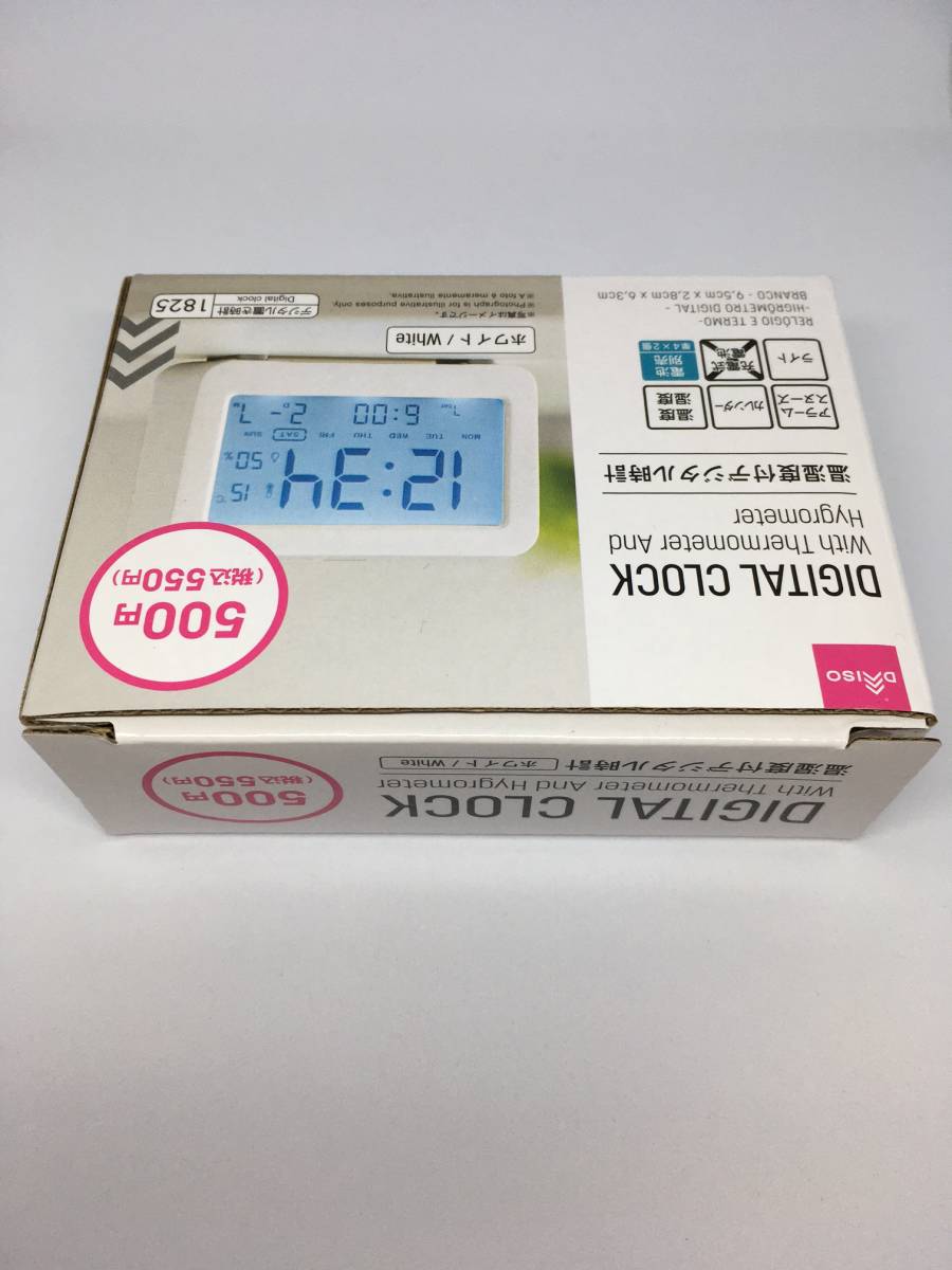 DAISO/ダイソー 温湿度付デジタル時計☆彡 ホワイト☆ ライト アラームスヌーズ カレンダー 温度湿度 新品未開封品