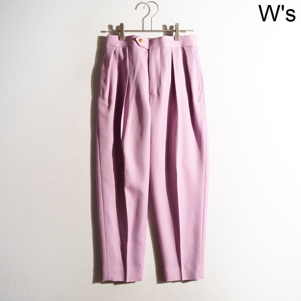 ウールモヘア 2タック ワイドテーパードパンツ ピンク 38