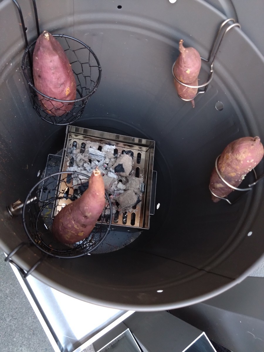 温度計がついていまして140℃から180°くらいで約1時間半で焼きいもが出来上がります。