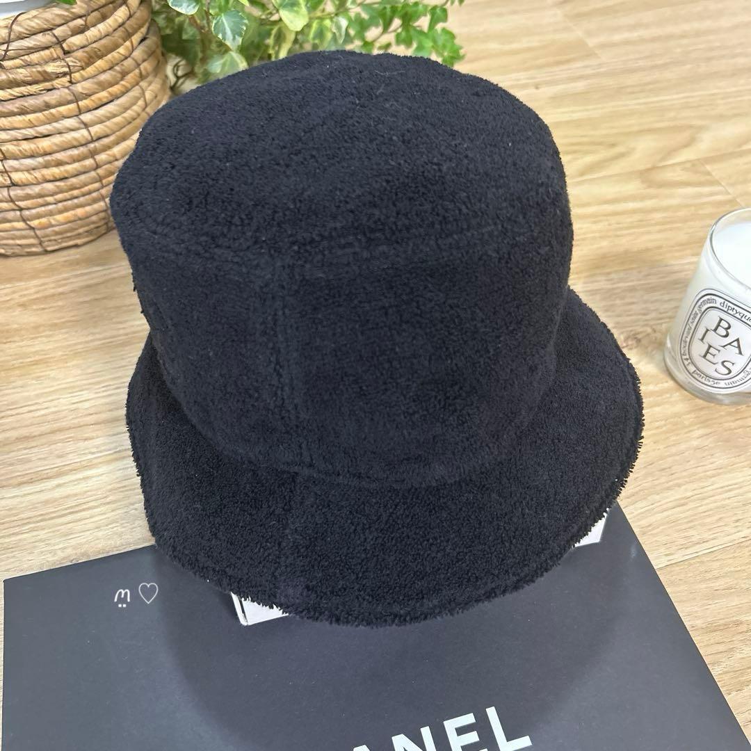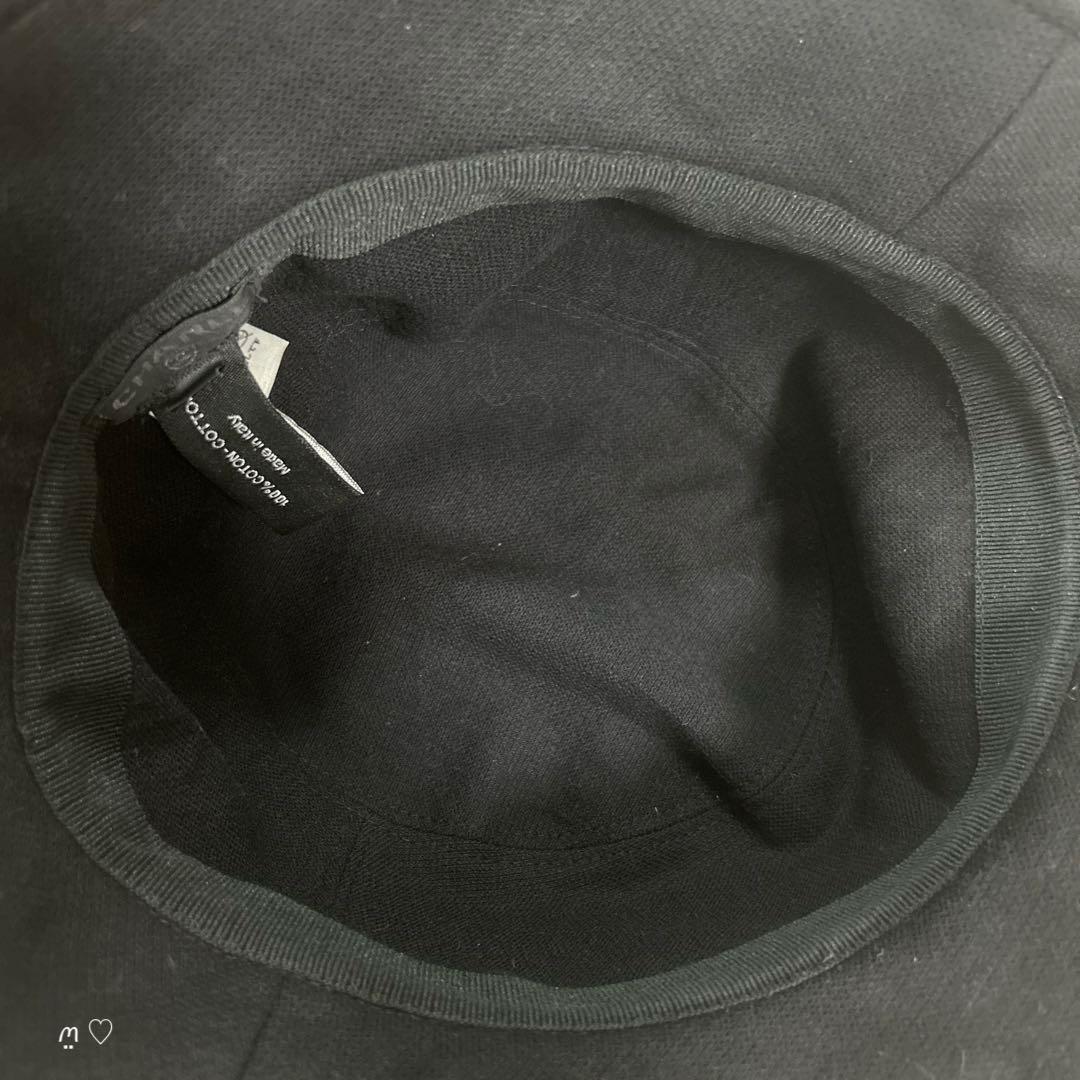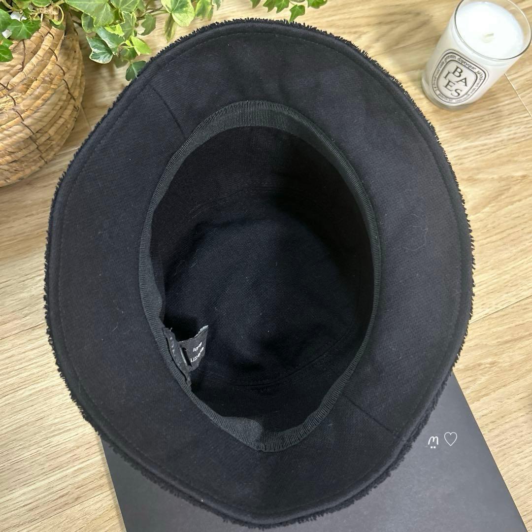 ブラックのパイル地に刺繍でココマークがあしらわれたバケットハット。