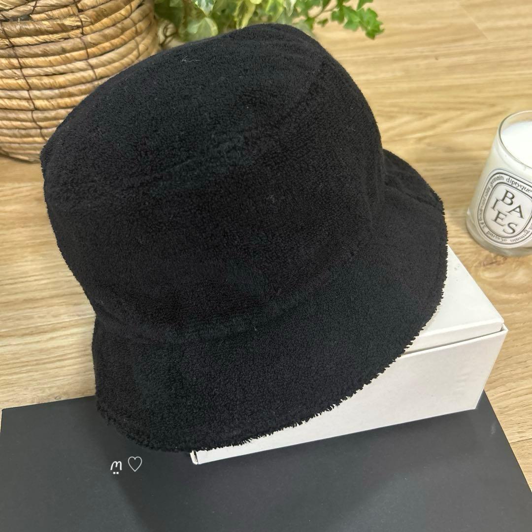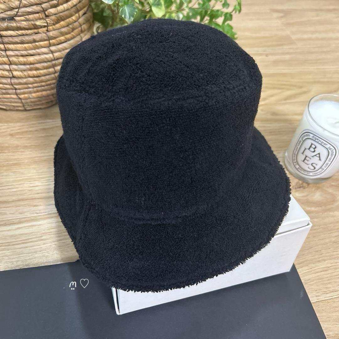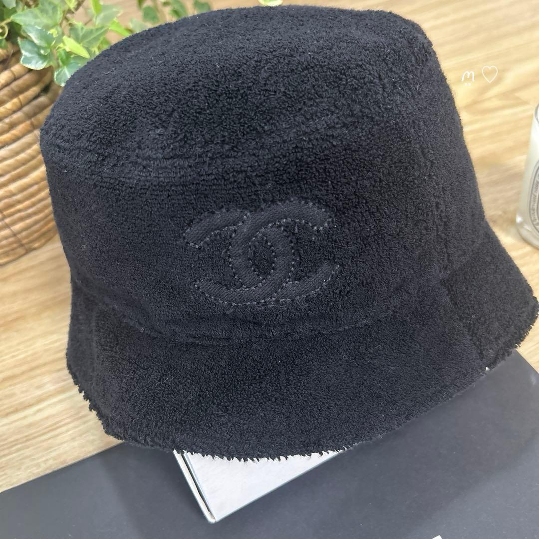 ブラックのパイル地に刺繍でココマークがあしらわれたバケットハット。