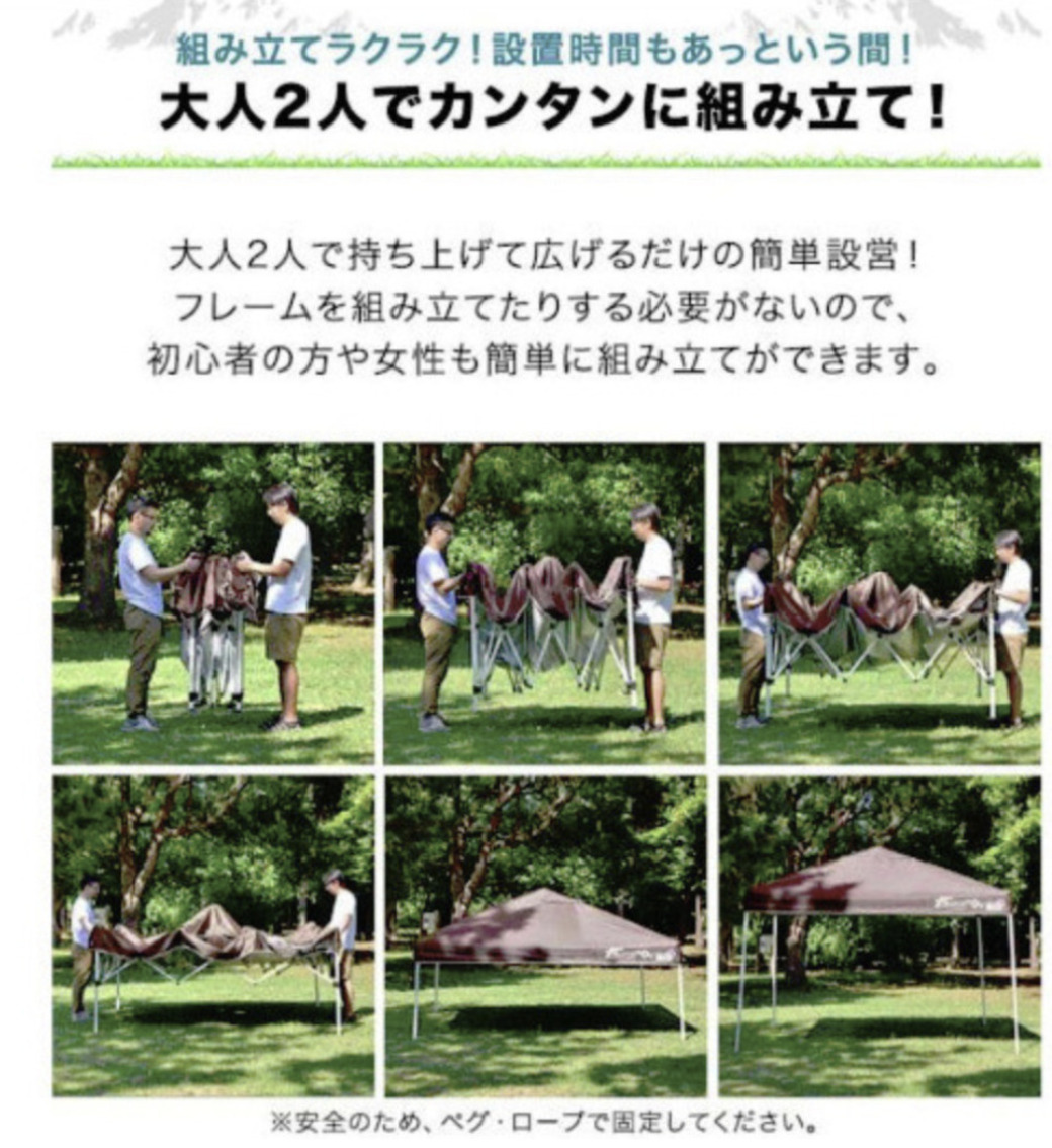 タープテントのフレームには、強度・耐久性あるスチールフレームを採用。
