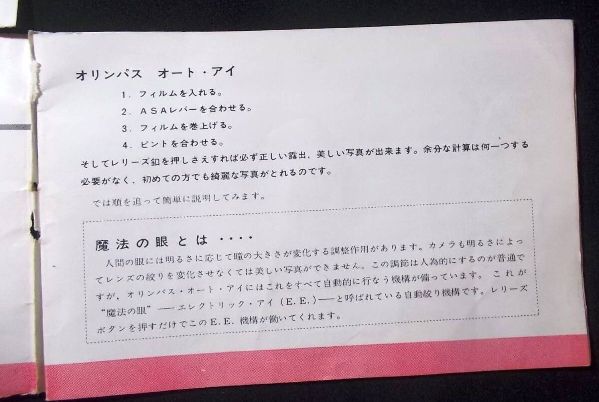 OLYMPUS(オリンパス)/Auto Eye(オートアイ) 取扱説明書★昭和レトロ 一眼レフ フィルムカメラ★