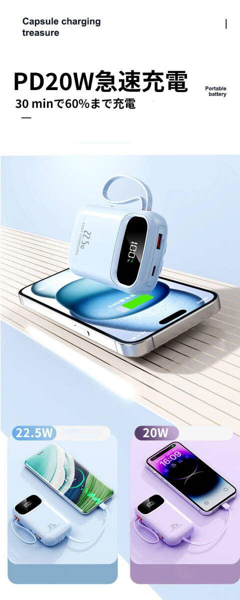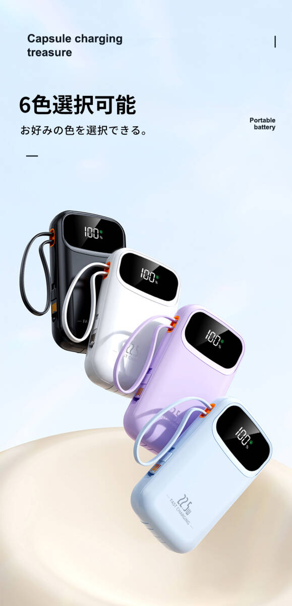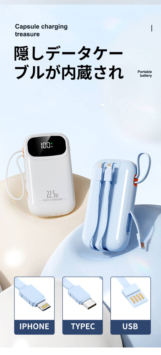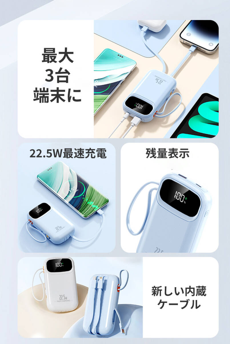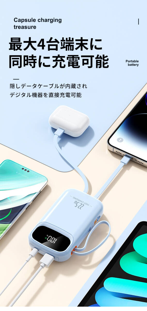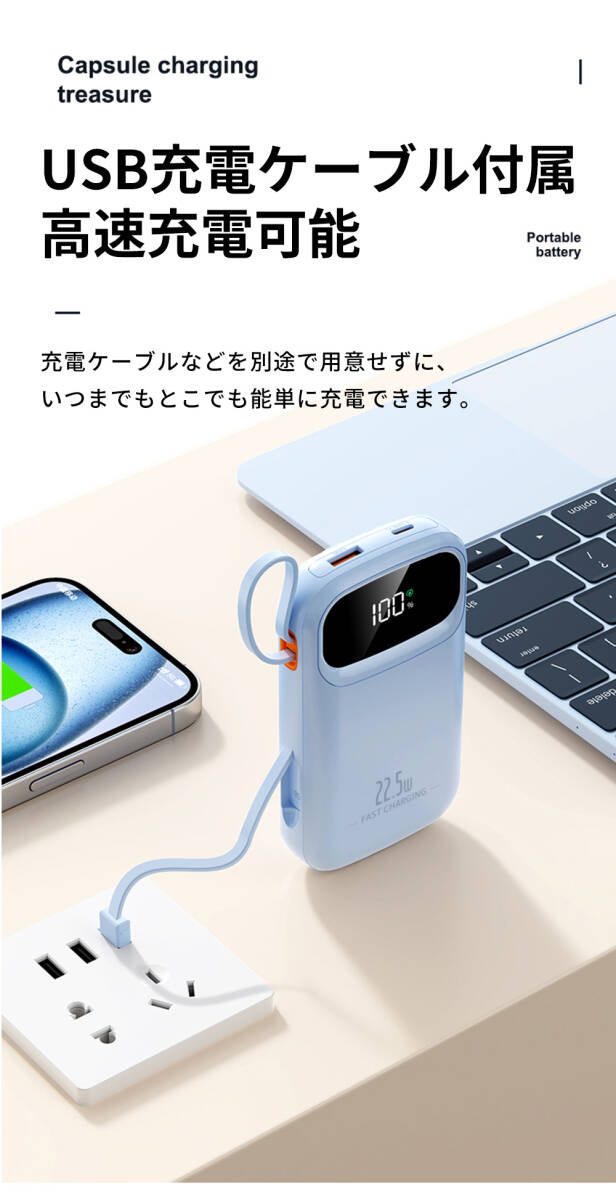 | 48800mAhのモバイルバッテリーは、スマホと重ねて持っても負担にならないほどコンパクトなのが魅力です。48800mAhの超大容量により、iOS、Androidのスマホとタブレットはもちろん、イヤホン、ゲーム機などにも数回に充電できます。 【Micro-usb/Type-c 2Way入力・Smart IC充電】 入力はUSB-CとLightningの2つ選択肢があり、お持ち運びが便利になります。入力は最大2.1A急速充電可能、1度の充電で数日使用も可能、旅行やキャンプに安心感が違います。効率的な充電を行う「低電流モード」を備え、Bluetoothイヤホンやスマートウォッチなど小型の機器も充電可能です。 【2.4A急速充電対応・2ポート同時充電可能】 出力には二つUSB-A ポートから2台同時に充電可能です。独自のスマート機能によりデバイスを自動で判別し、最適な出力で急速充電を行います。出力は最大2.4A急速充電可能ですから、素早く蓄電可能、より長持ちで旅先やちょっとした外出、出張の際の強い味方に最適。 【電池残量が一目瞭然!安全保護機能搭載】 本体にLED残量表示ランプを搭載しており、電池残量が一目で確認できます。使うときにバッテリーの残量が無いといった不安を解消します。高性能ICチップと安全装置搭載、バッテリーが過充電・過放電・過熱・ショートの際に、自動的に電流を遮断して充電停止になるので、安心して使用できます。本モバイルバッテリーはPSEマーク取得済、安心*安全にご使用いただけます。 |