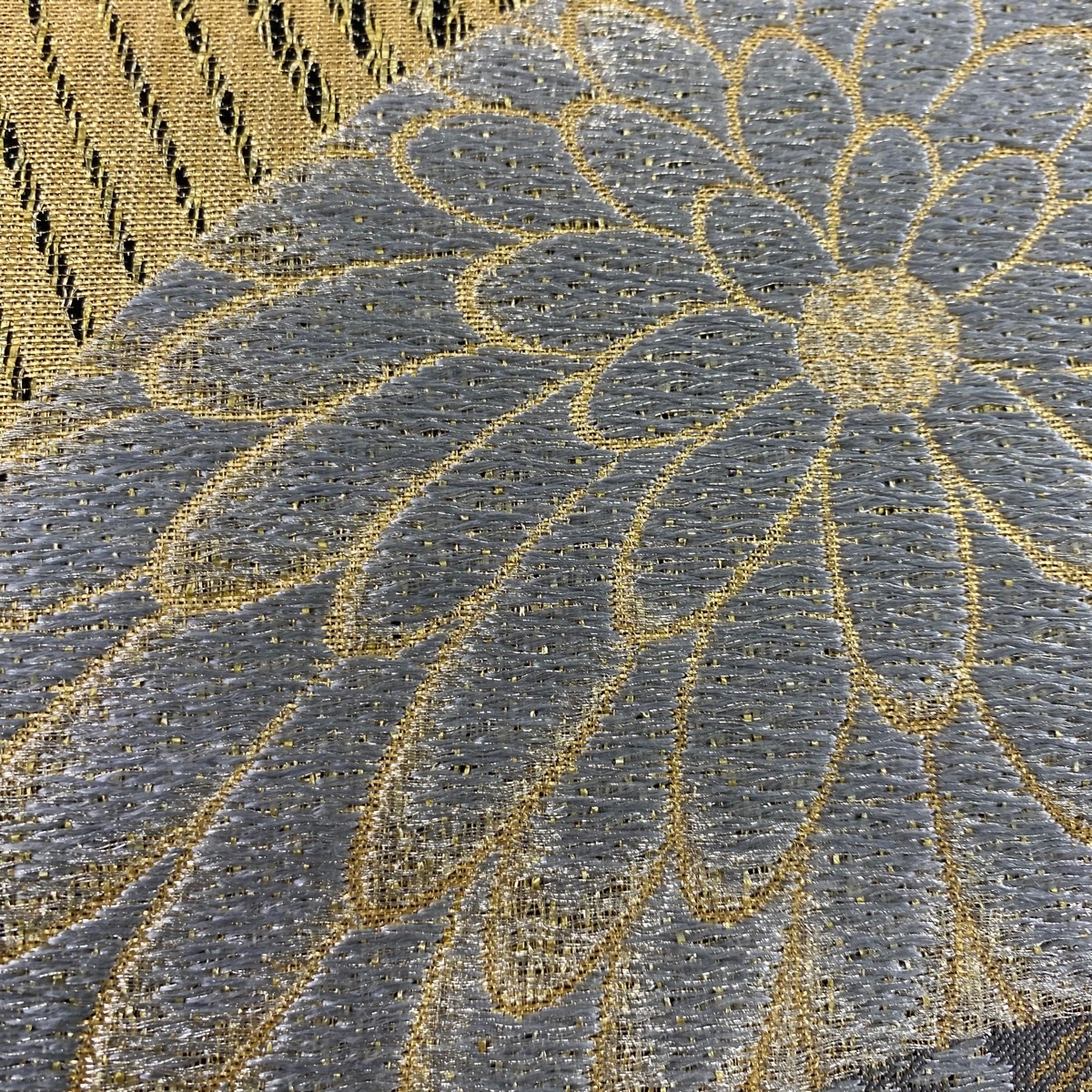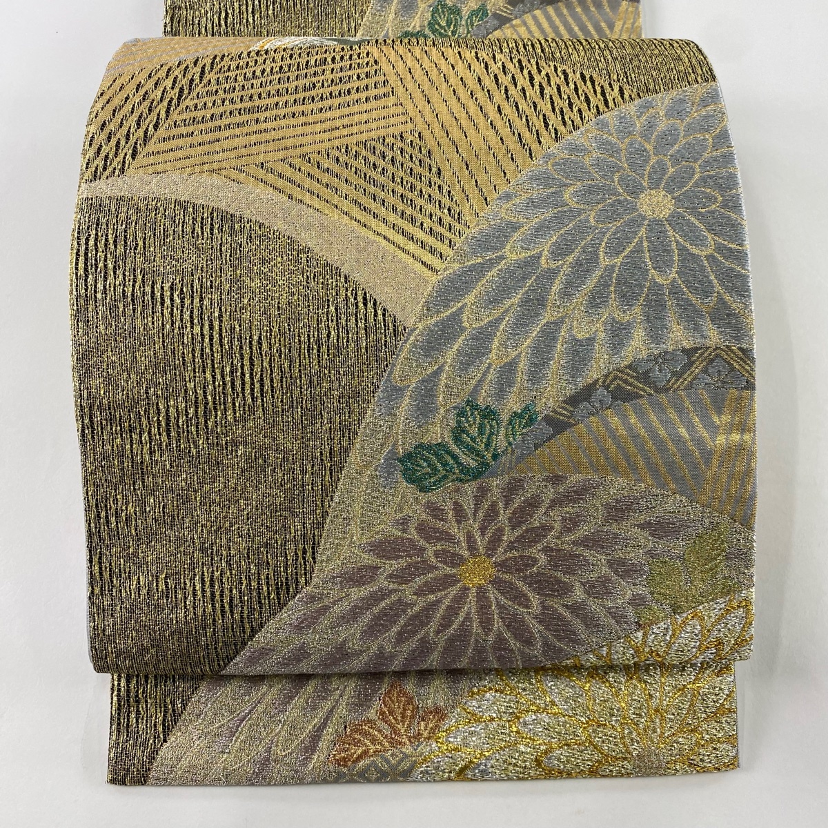 | 袋帯 美品 名品 青海取菊文様 七宝 箔 金銀糸 金色 六通 正絹 【中古】 |