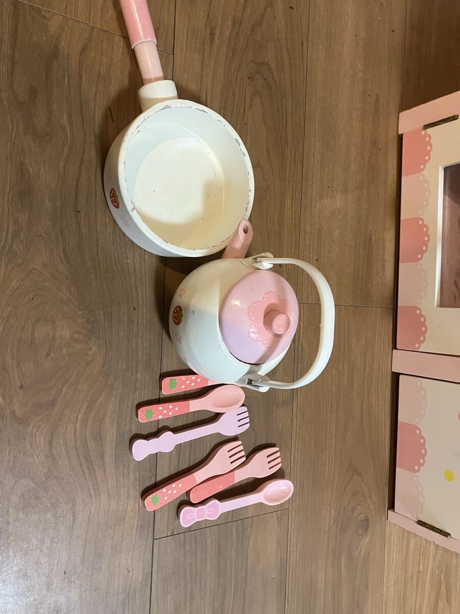 おまけに、スプーン3本、フォーク3本、ケトル、フライパンをおつけいたします。