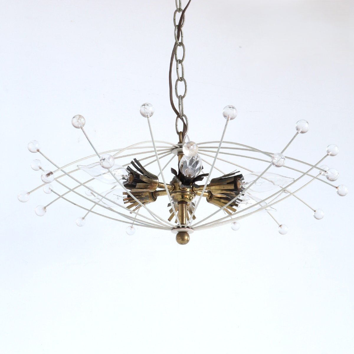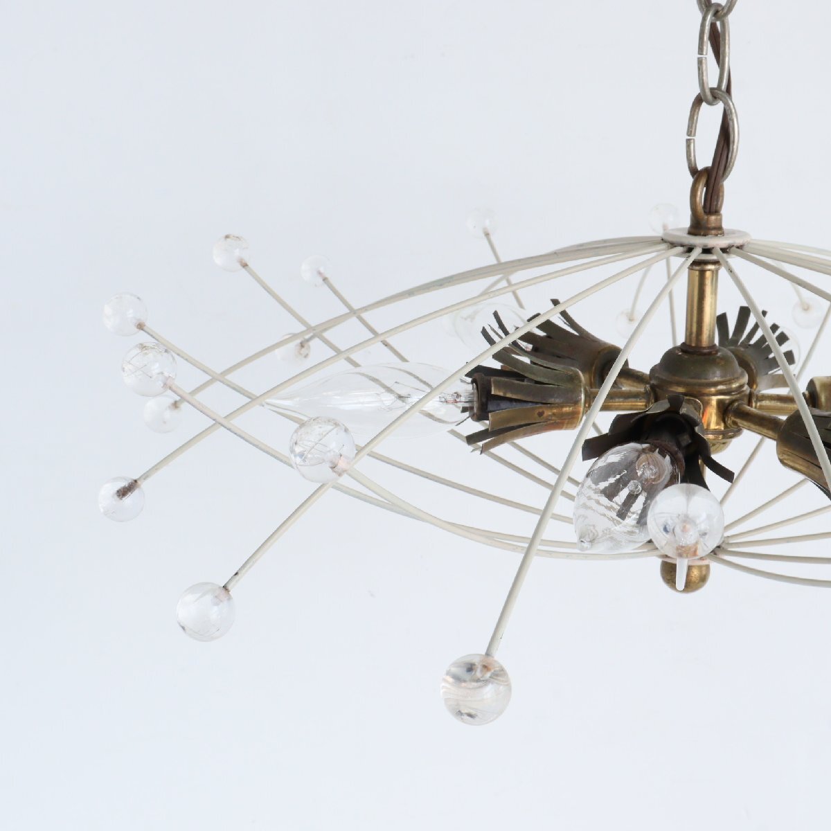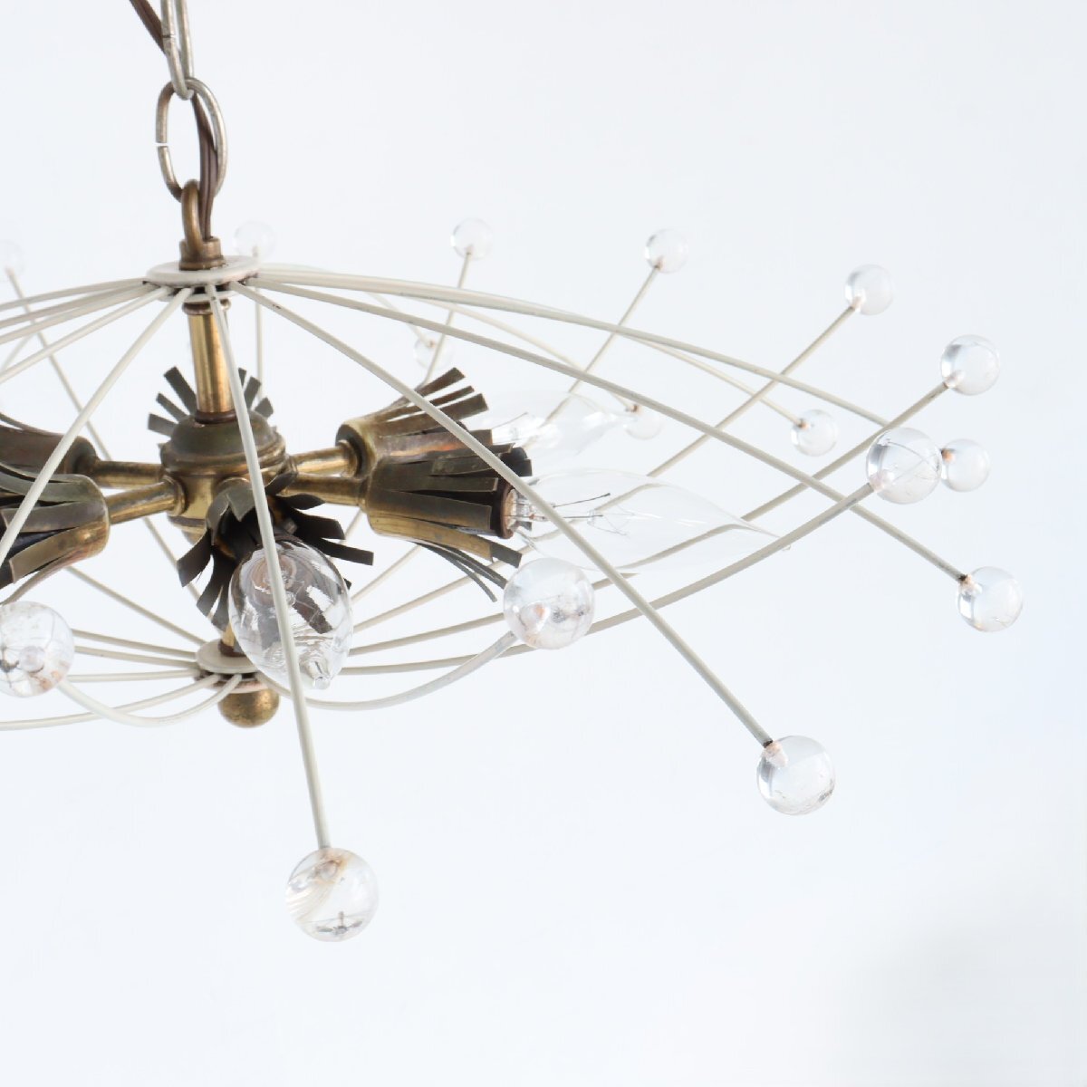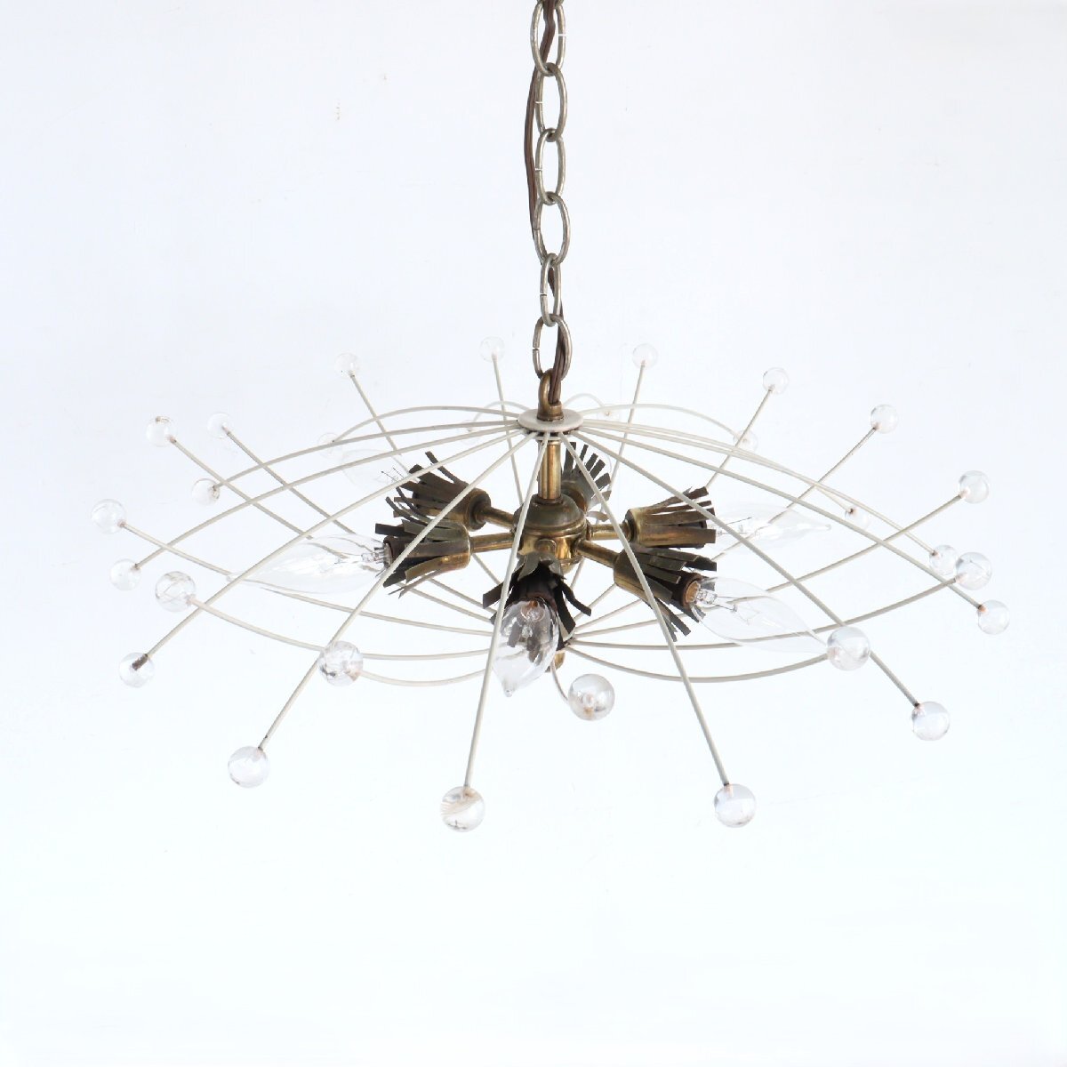 | 商品説明 explanation | アメリカで使用されていたヴィンテージの6灯のペンダントランプです。 ワイヤーの先にアクリルボールがついており、交差したシェードのデザインがとても魅力的です。 消灯時でもお部屋のアクセントになります。 ご家庭のインテリア、カフェや店舗什器にいかがでしょうか。 |