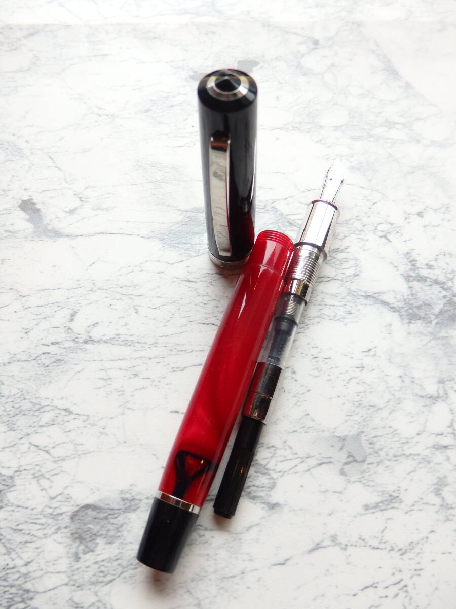 興味のある方は、この美しいレッドとブルーパールのコンビネーションの万年筆に是非、参加ください。