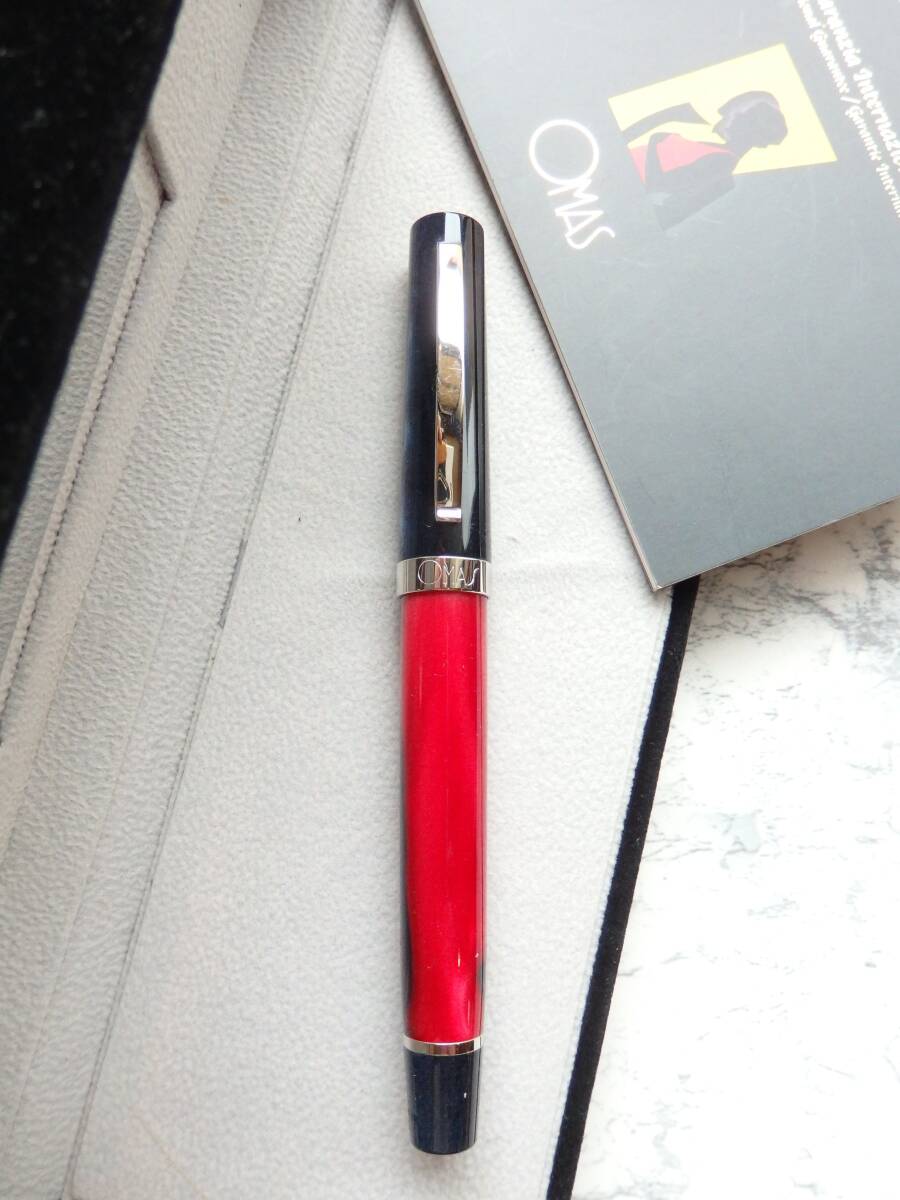 ◆【きれいな良品】OMAS オマス ボローニャ レッド&ブルーパール万年筆 ペン先:14K585Fソリッドゴールド F