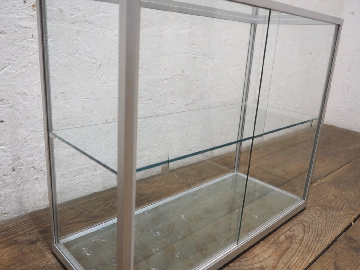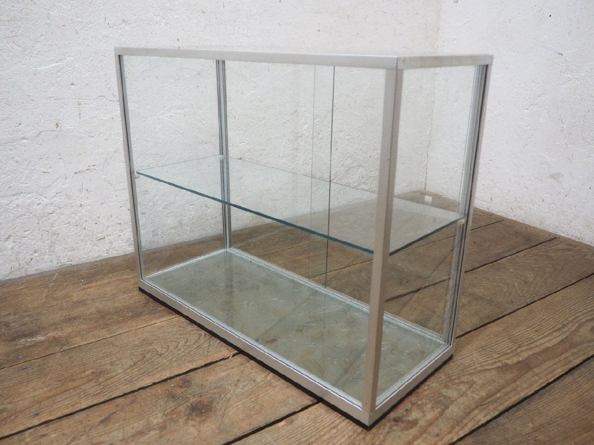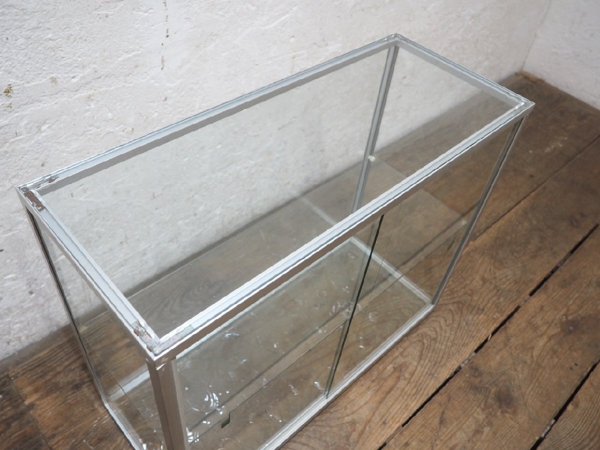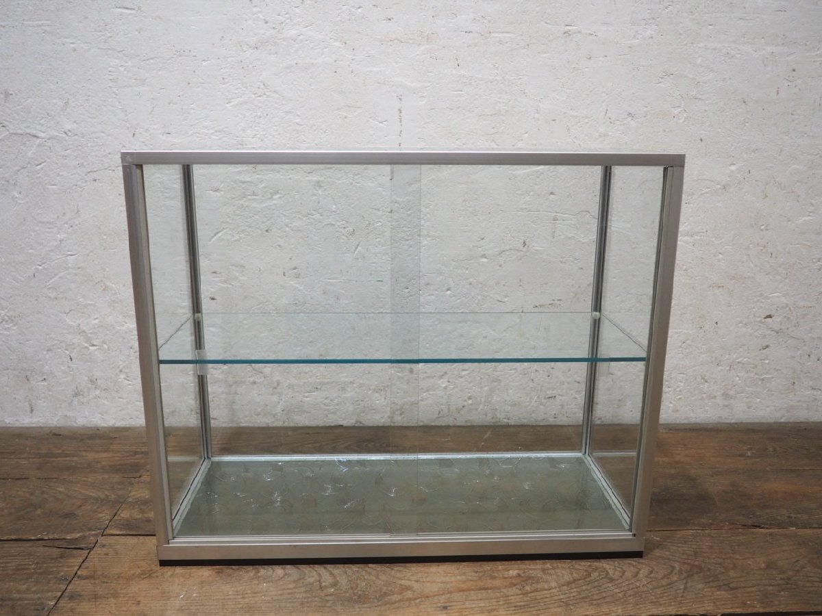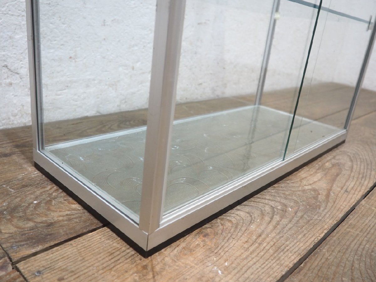 タW1117◆H50cm×W61cm◆アルミフレームのレトロなガラスケース◆飾り棚 収納棚 展示棚 ディスプレイラック ショーケース 店舗什器K笹4