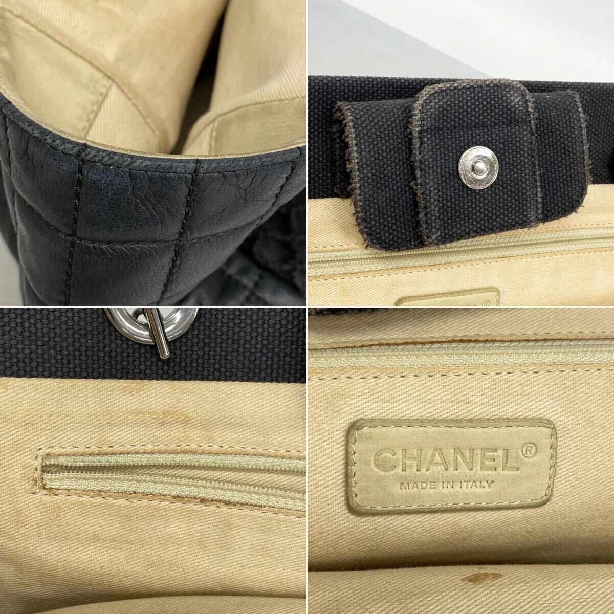 シャネル チョコバー ラムスキンレザー キャンバス トートバッグ ブラック