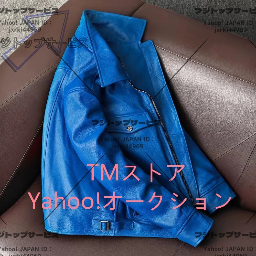 数あるオークションの中からご覧頂き、本当にありがとうございます♪当方、お客様が安心して取引が出来るよう真心込めて【商品詳細】★状態:新品未使用素材:牛革カラー:ブルー●サイズ寸法●S着丈62cm 肩幅43cm 胸囲100cm 袖丈59cmM着丈63cm 肩幅44cm 胸囲104cm 袖丈60cmL着