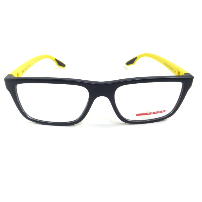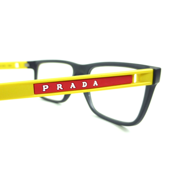 | プラダ(PRADA) プラダスポーツ リネア・ロッサ スクエア ラバー メガネフレーム 眼鏡 VPS02O ブラック×イエロー アイウェア(中古) |