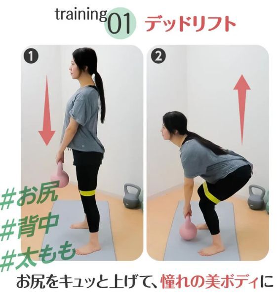 デッドリフト:お尻・太もも・背中の引き締めに。