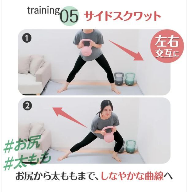 サイドスクワット:お尻〜太ももをしなやかに引き締め。