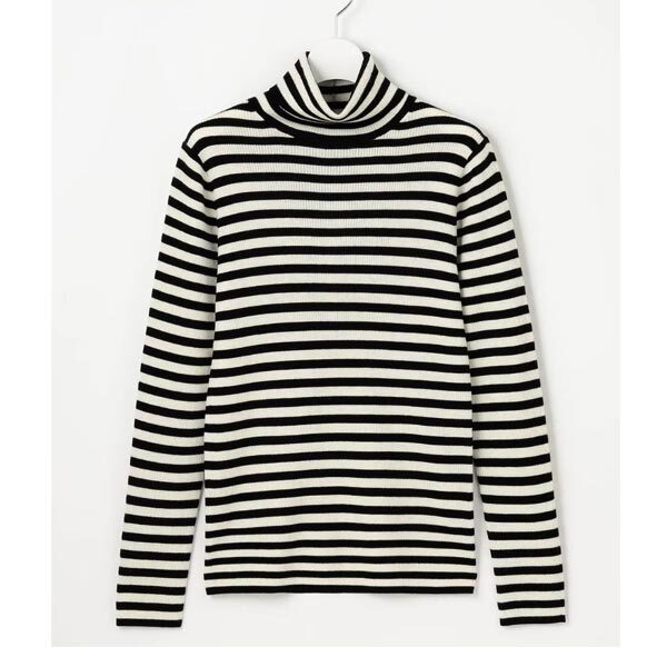シンプルで汎用性のあるリブタートルネックプルオーバー。