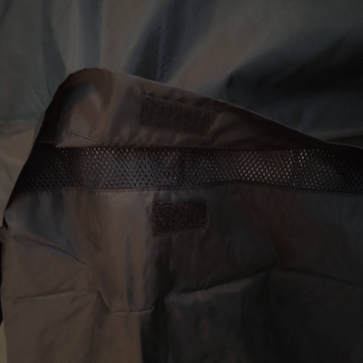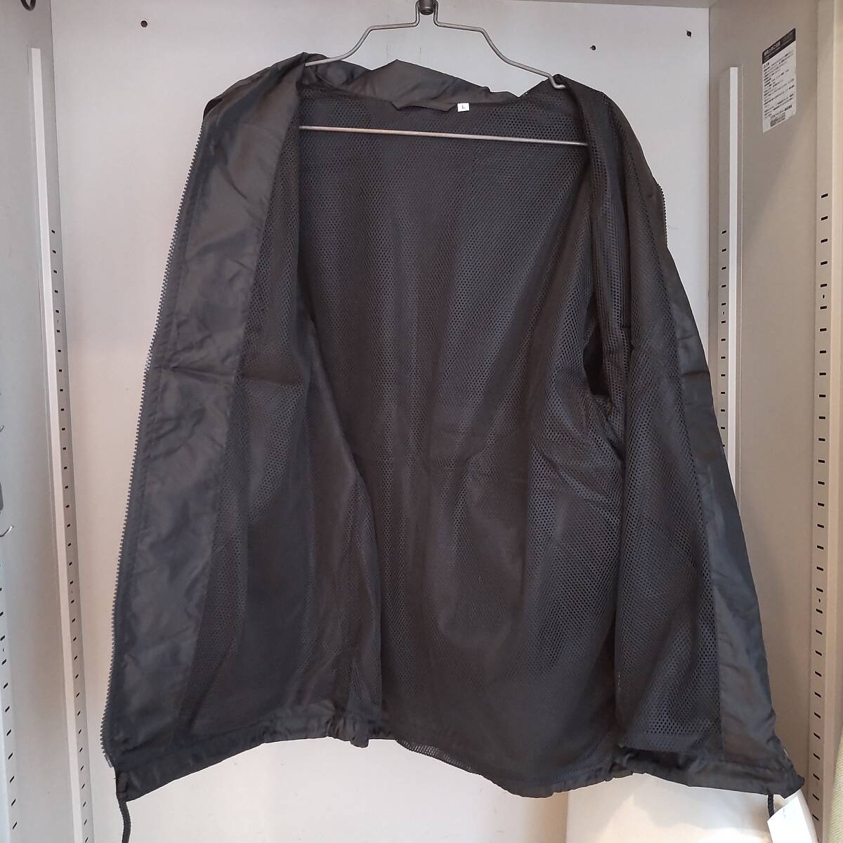 サイズL 着丈約75cm 肩幅約53cm 袖丈約57cm 身幅約60cm カラーはブラックです。 未使用保管品ですが、たたんであった時のシワや多少のスレ、縫製時の糸ほつれなどが見られます。 会社名や個人名などの刺繍は見られませんでした。 小さく折りたたんで発送いたします。 | ||||