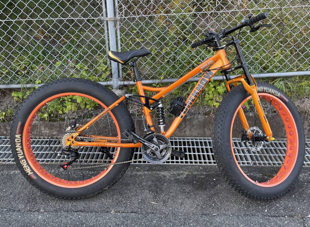 タイヤバリ山、ペダルのステッカーもまだ残っております。