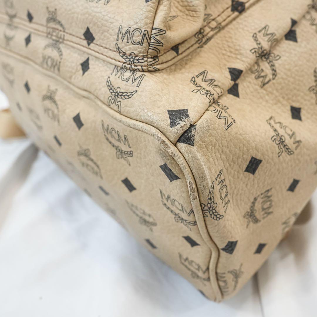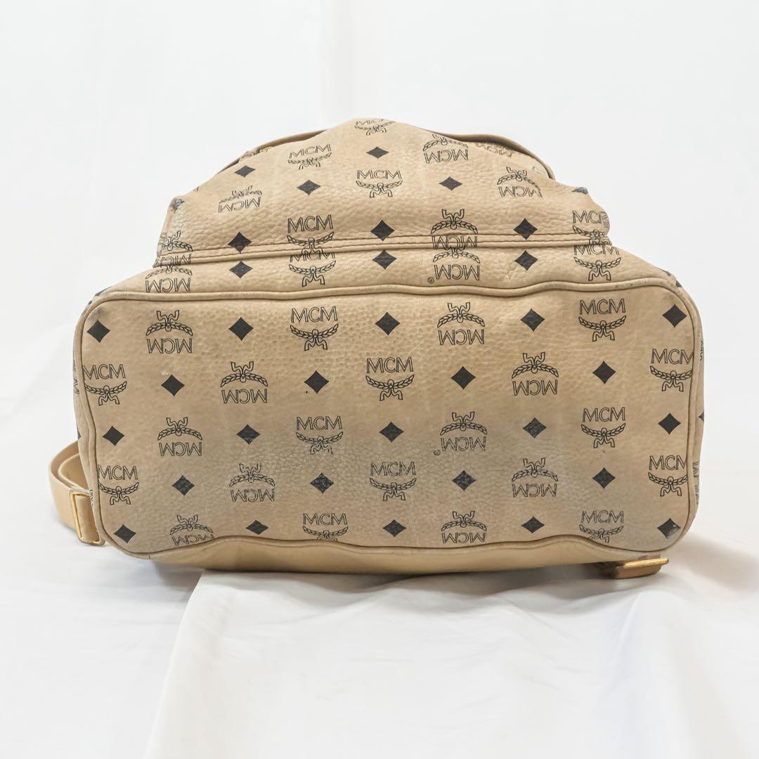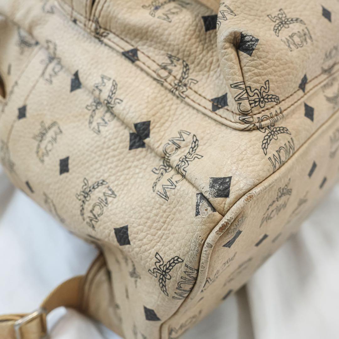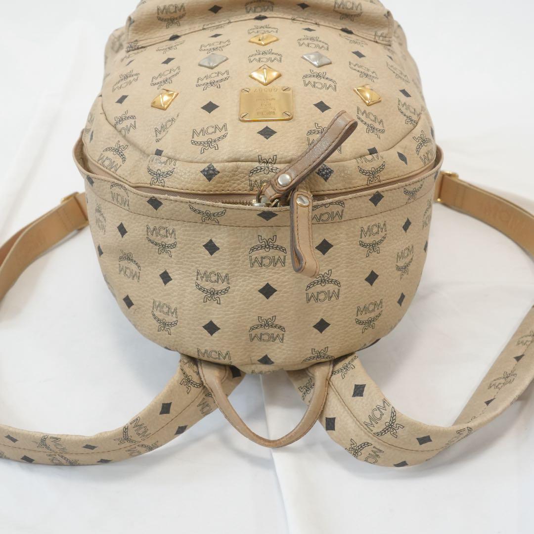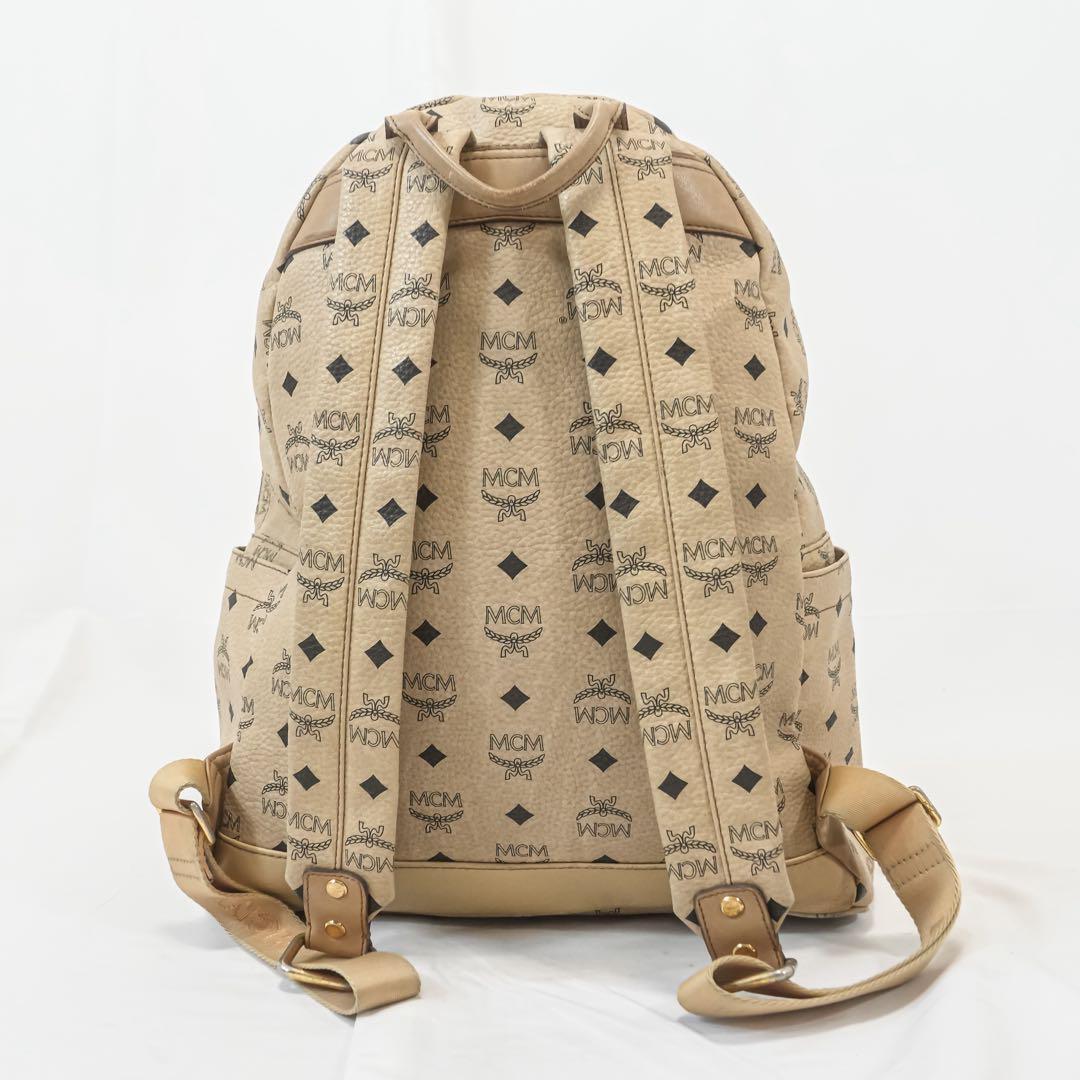 MCM のアイコニックな総柄デザインに、ゴールド&シルバーのスタッズをあしらったリュックサック。